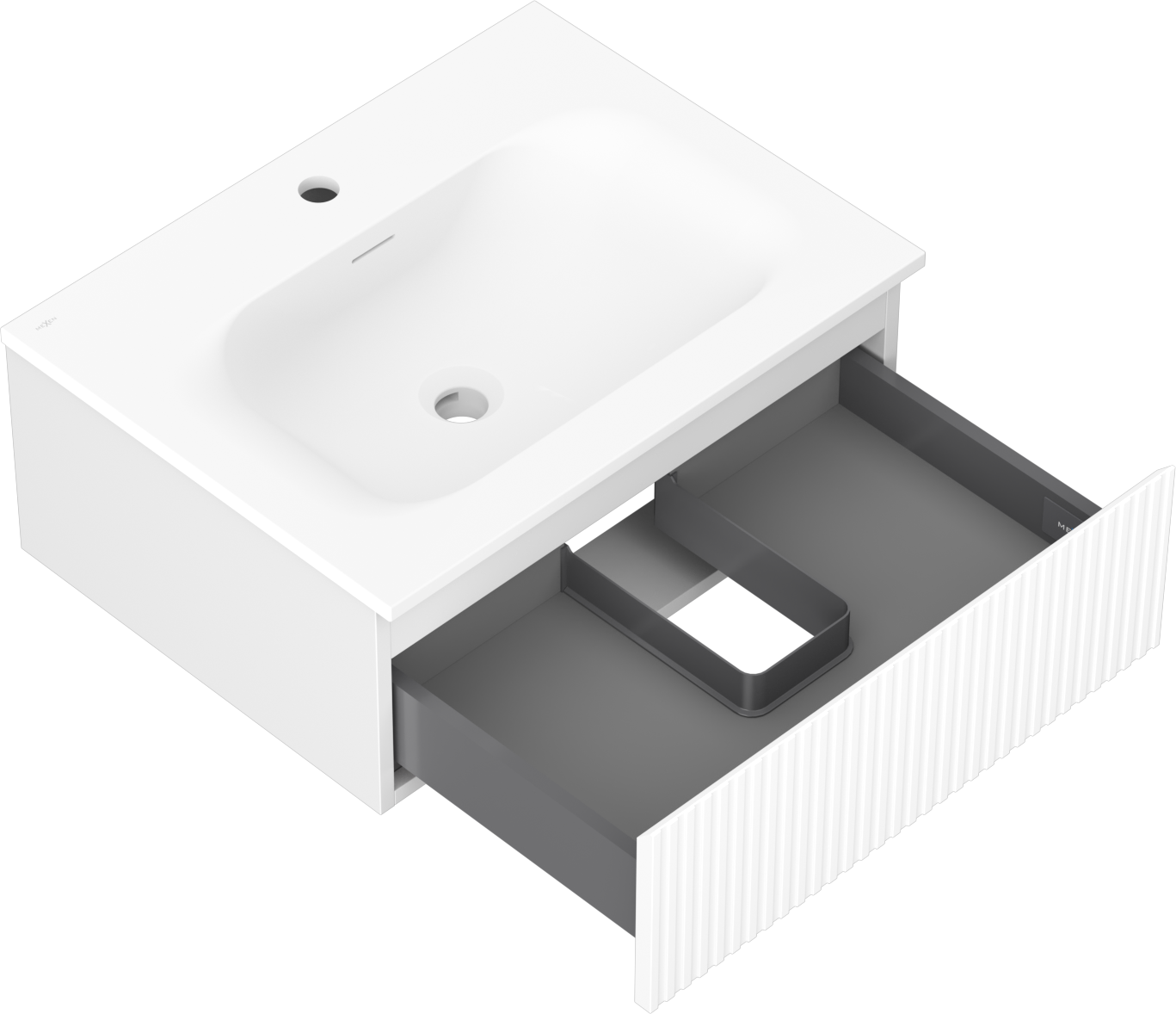 La découpe dans le tiroir est conçue de manière à accueillir le siphon, qui est nécessaire dans les installations de lavabo. Ainsi, le meuble peut être installé de manière pleinement fonctionnelle, sans devoir renoncer à l'espace du tiroir au profit de l'installation.