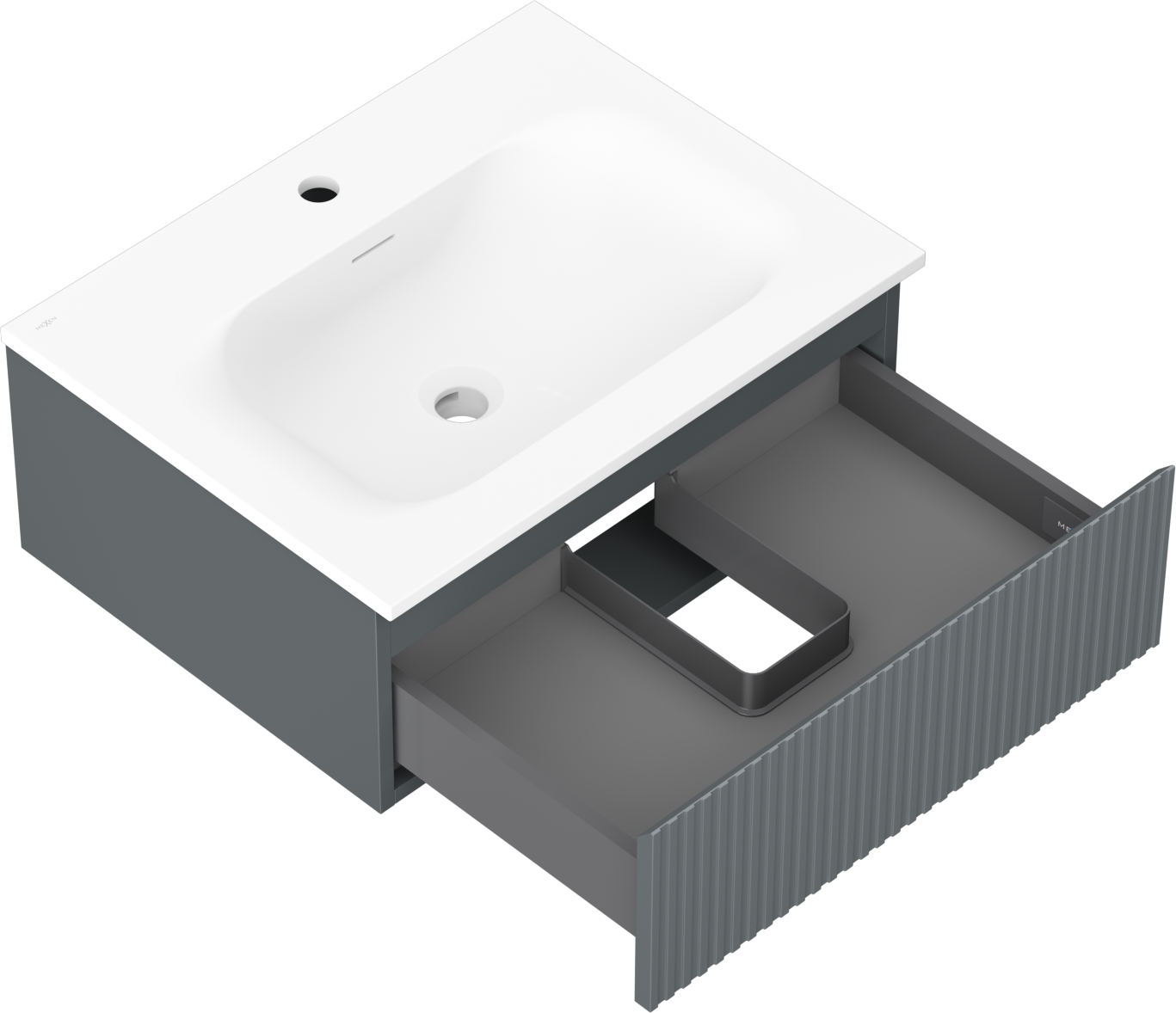 La découpe dans le tiroir est conçue de manière à accueillir le siphon, qui est nécessaire dans les installations de lavabo. Ainsi, le meuble peut être installé de manière pleinement fonctionnelle, sans devoir renoncer à l'espace du tiroir au profit de l'installation.