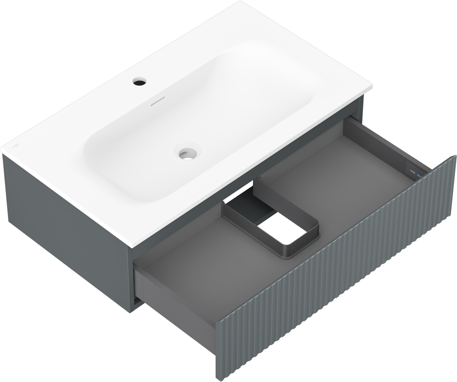 La découpe dans le tiroir est conçue de manière à accueillir le siphon, qui est nécessaire dans les installations de lavabo. Ainsi, le meuble peut être installé de manière pleinement fonctionnelle, sans devoir renoncer à l'espace du tiroir au profit de l'installation.