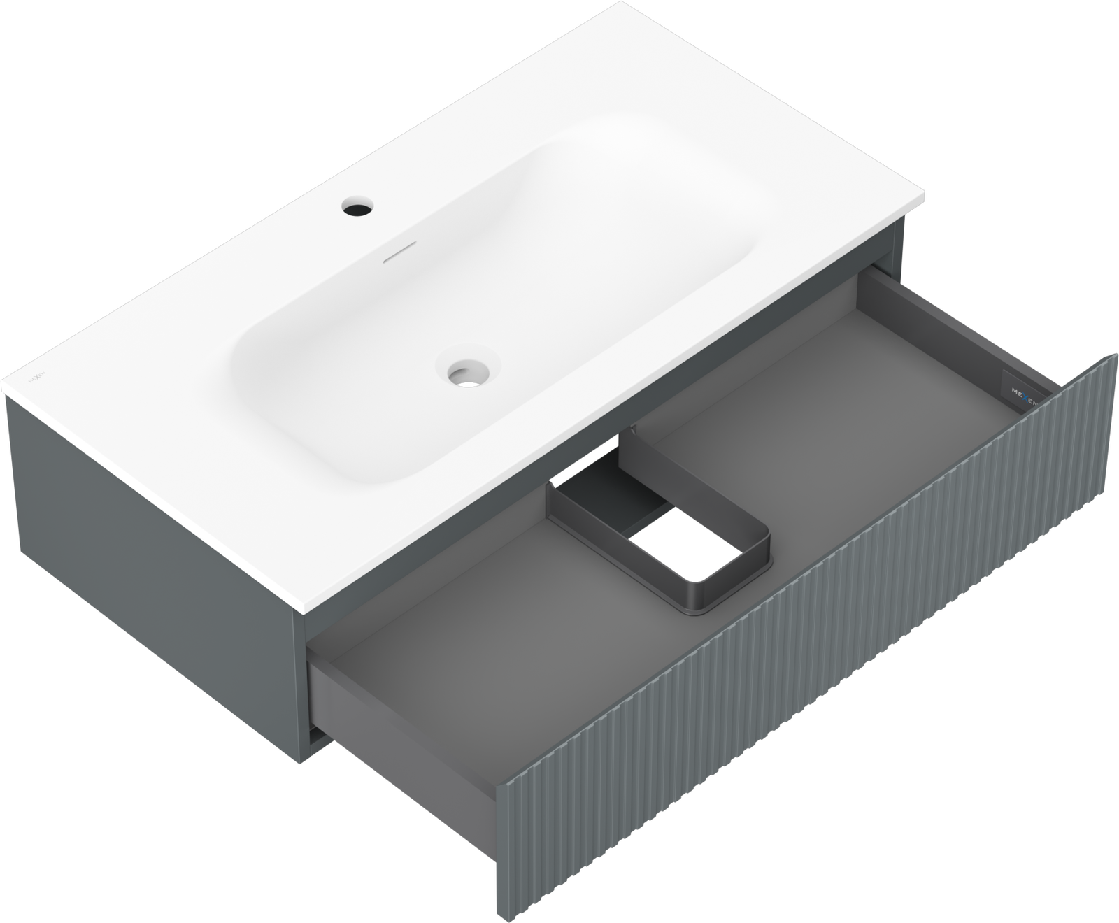 La découpe dans le tiroir est conçue de manière à accueillir le siphon, qui est nécessaire dans les installations de lavabo. Ainsi, le meuble peut être installé de manière pleinement fonctionnelle, sans devoir renoncer à l'espace du tiroir au profit de l'installation.
