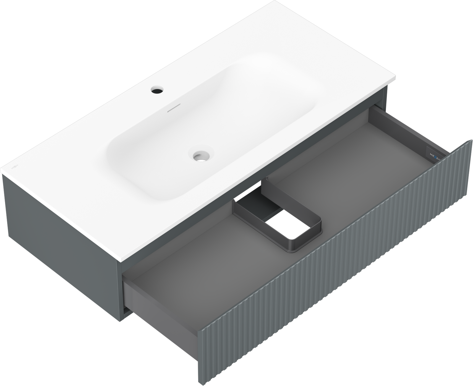 La découpe dans le tiroir est conçue de manière à accueillir le siphon, qui est nécessaire dans les installations de lavabo. Ainsi, le meuble peut être installé de manière pleinement fonctionnelle, sans devoir renoncer à l'espace du tiroir au profit de l'installation.