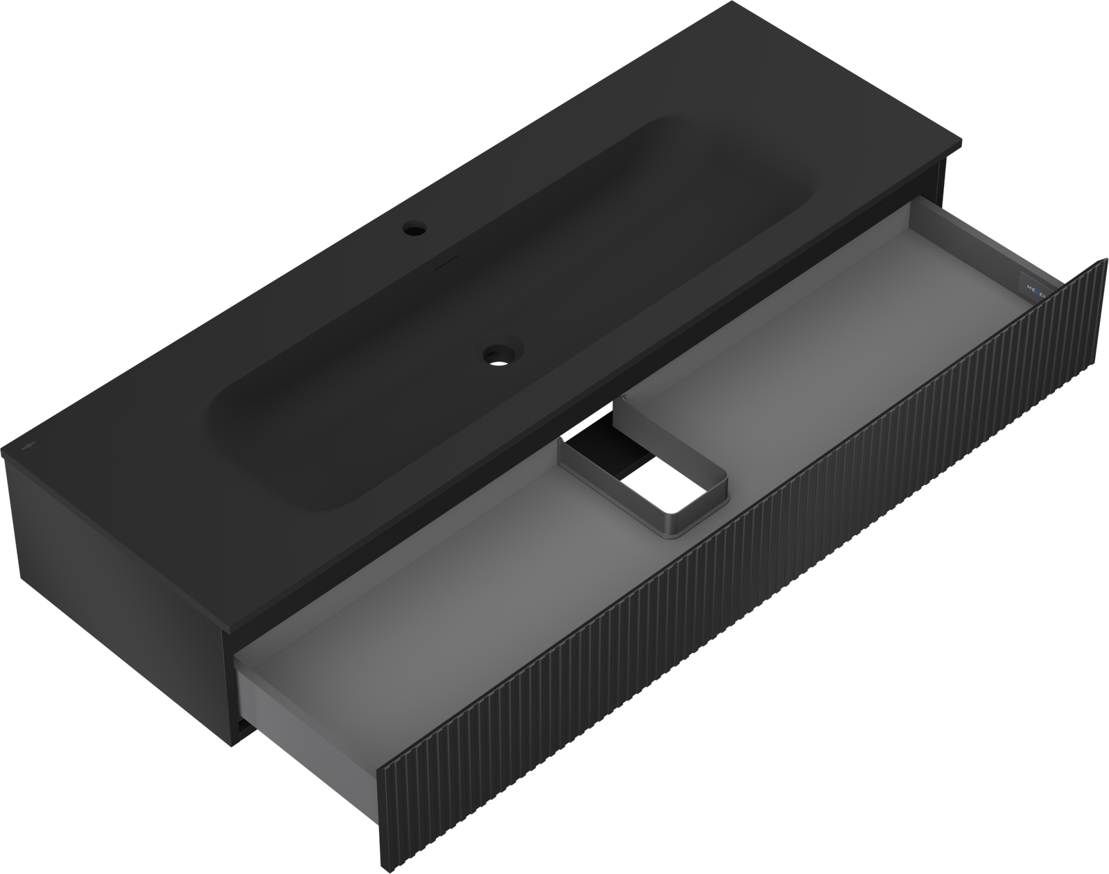 La découpe dans le tiroir est conçue de manière à accueillir le siphon, qui est nécessaire dans les installations de lavabo. Ainsi, le meuble peut être installé de manière pleinement fonctionnelle, sans devoir renoncer à l'espace du tiroir au profit de l'installation.