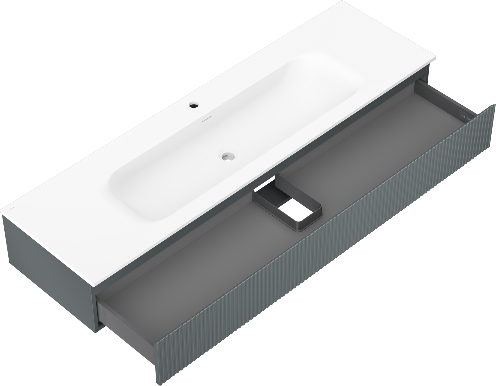 La découpe dans le tiroir est conçue de manière à accueillir le siphon, qui est nécessaire dans les installations de lavabo. Ainsi, le meuble peut être installé de manière pleinement fonctionnelle, sans devoir renoncer à l'espace du tiroir au profit de l'installation.