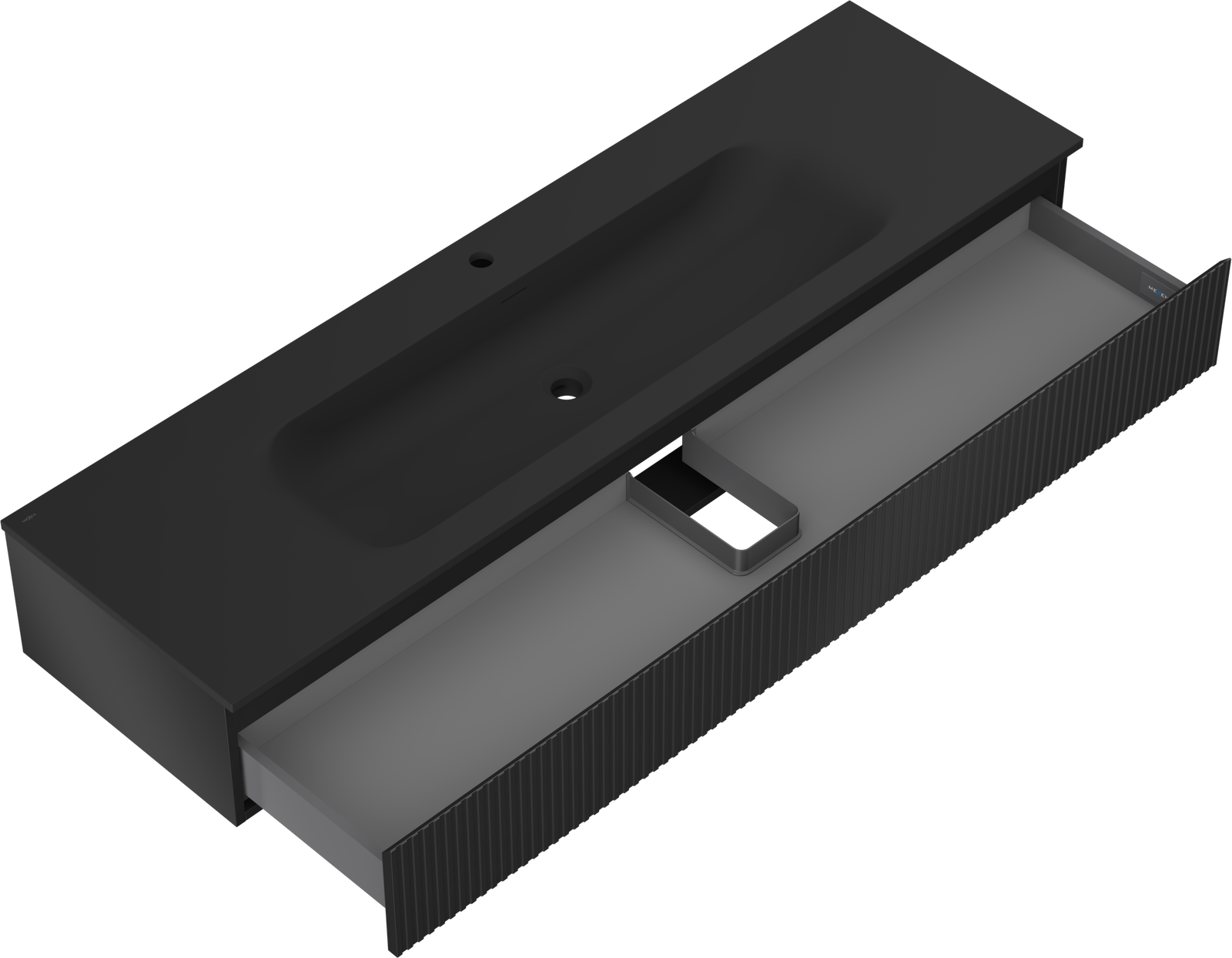 La découpe dans le tiroir est conçue de manière à accueillir le siphon, qui est nécessaire dans les installations de lavabo. Ainsi, le meuble peut être installé de manière pleinement fonctionnelle, sans devoir renoncer à l'espace du tiroir au profit de l'installation.