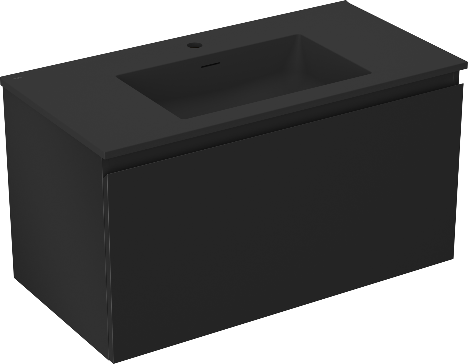Mexen Orio armoire de salle de bain 90 cm avec lavabo Otis, 1 tiroir, noir mat - 91A10-09047-1-BF71-W18M71