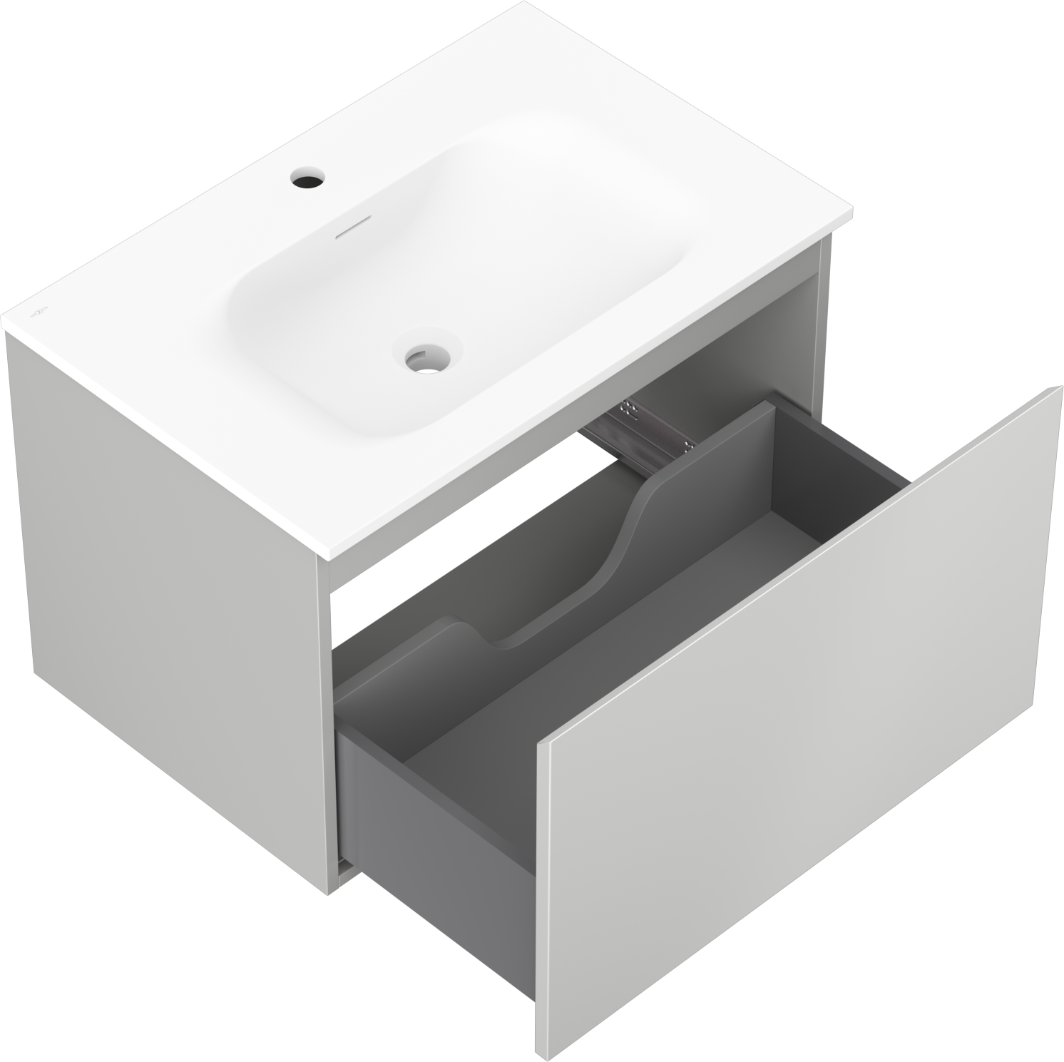 La découpe dans le tiroir est conçue de manière à accueillir le siphon, qui est nécessaire dans les installations de lavabo. Ainsi, le meuble peut être installé de manière pleinement fonctionnelle, sans devoir renoncer à l'espace du tiroir au profit de l'installation.