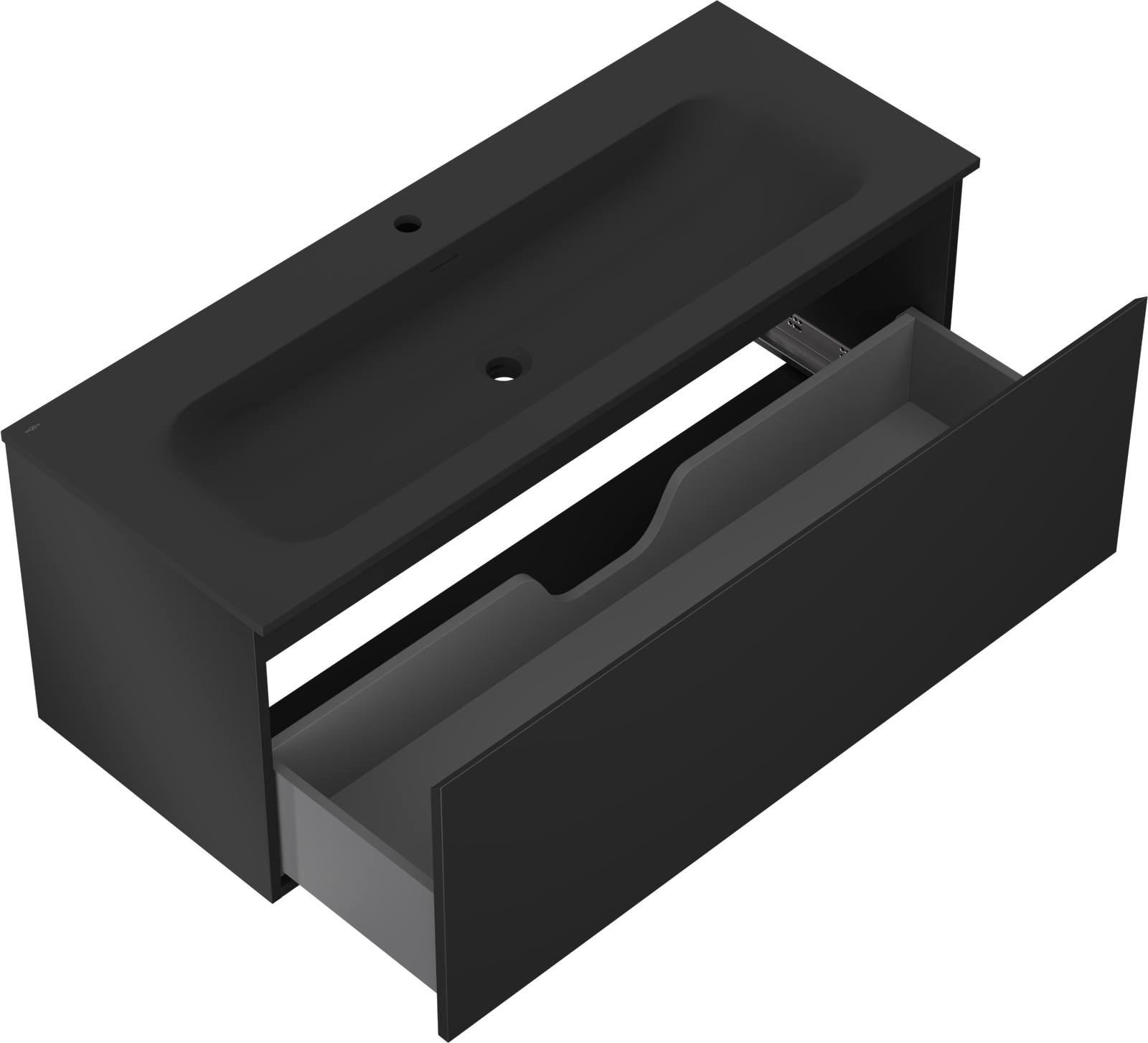 La découpe dans le tiroir est conçue de manière à accueillir le siphon, qui est nécessaire dans les installations de lavabo. Ainsi, le meuble peut être installé de manière pleinement fonctionnelle, sans devoir renoncer à l'espace du tiroir au profit de l'installation.