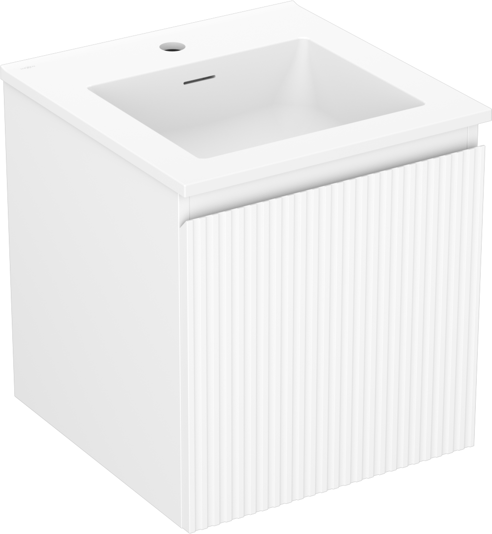 Mexen Rivel armoire de salle de bain 45 cm avec lavabo Otis, 1 tiroir, rainuré, blanc mat - 91A20-04547-1-BF01-W18M01