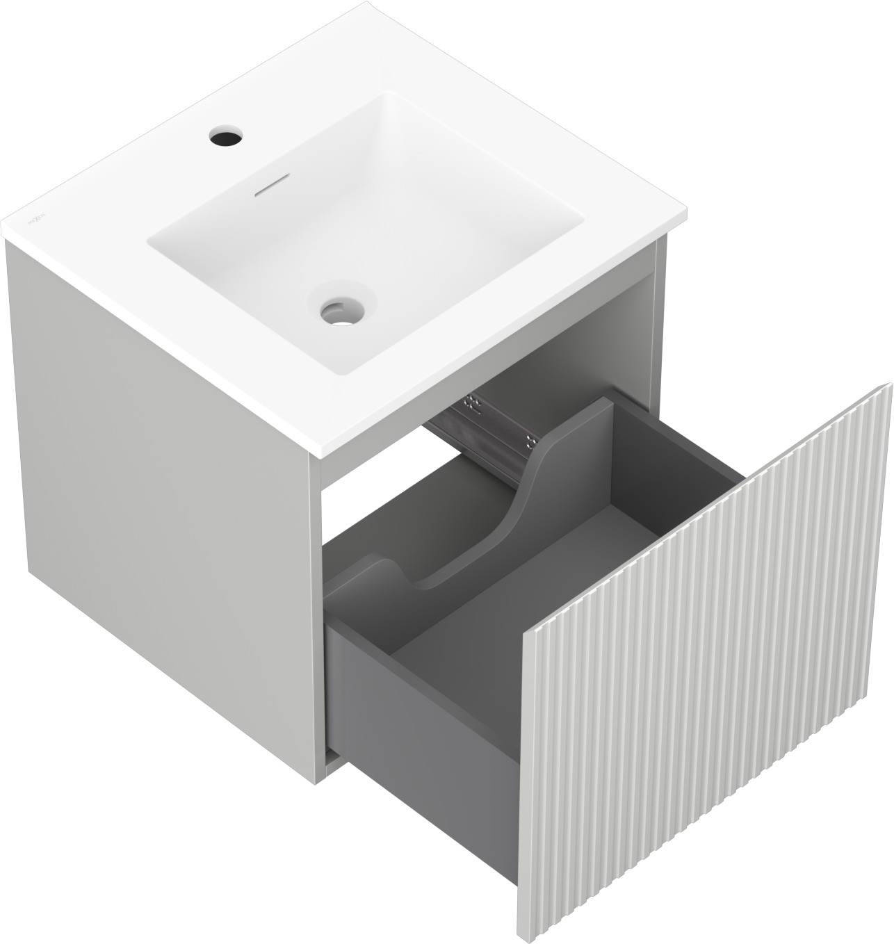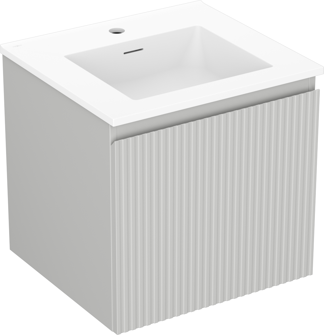 Mexen Rivel armoire de salle de bain 50 cm avec lavabo Otis, 1 tiroir, rainuré, gris mat/blanc mat - 91A20-05047-1-BF62-W18M01