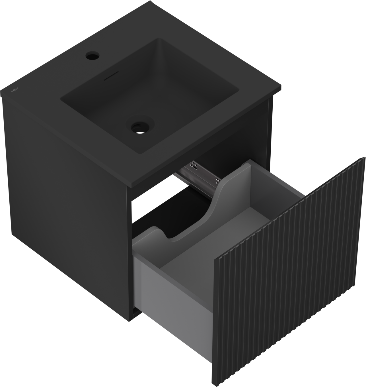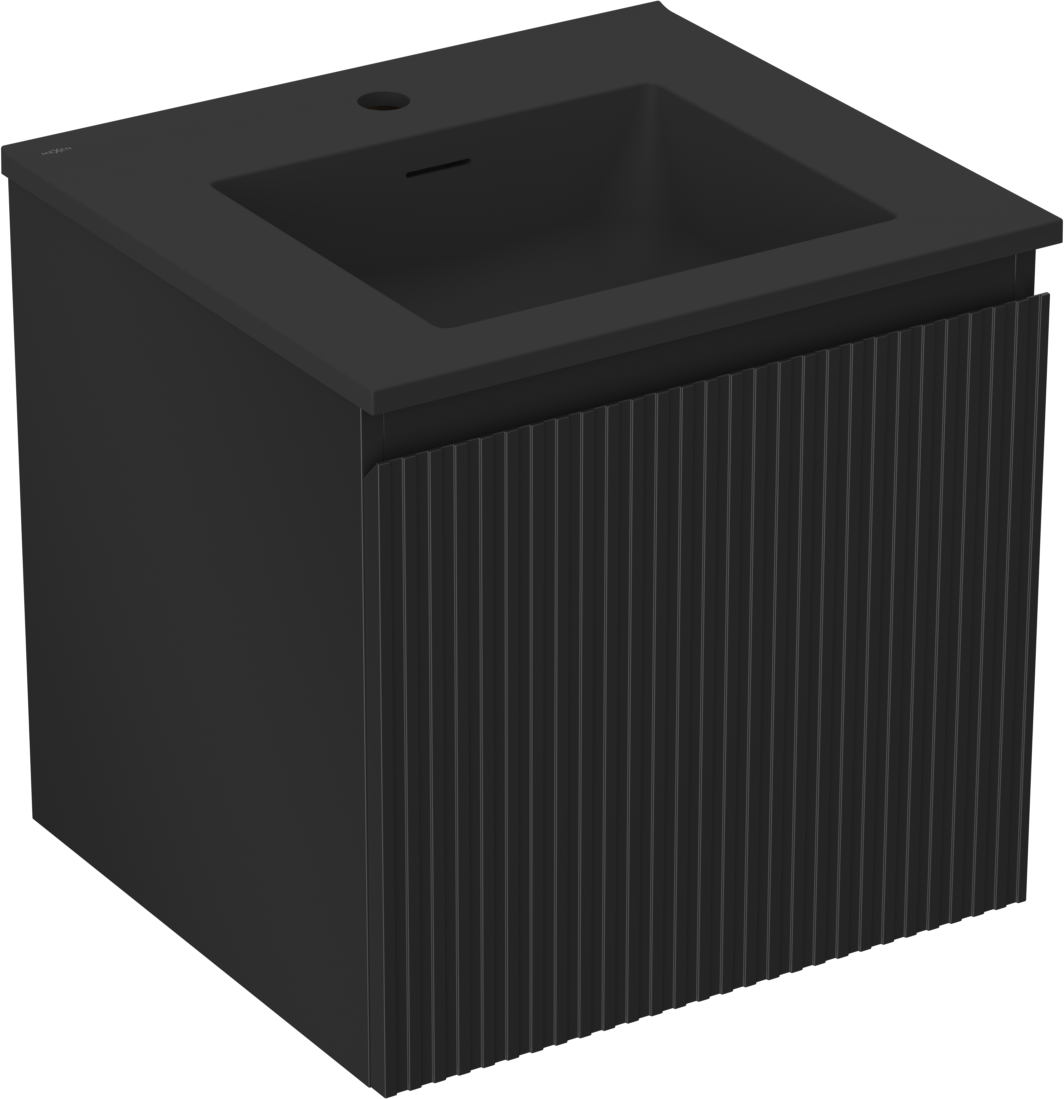 Mexen Rivel meuble de salle de bains 50 cm avec lavabo Otis, 1 tiroir, rainuré, noir mat - 91A20-05047-1-BF71-W18M71