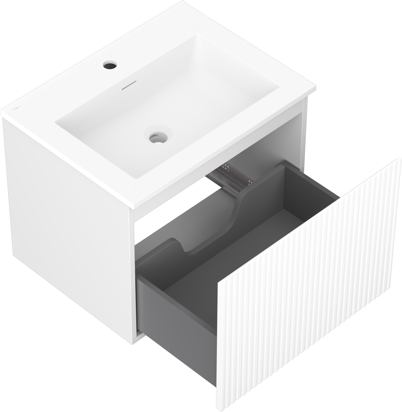 Mexen Rivel armoire de salle de bain 60 cm avec lavabo Otis, 1 tiroir, rainuré, blanc mat - 91A20-06047-1-BF01-W18M01