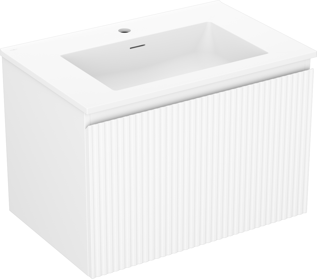 Mexen Rivel meuble de salle de bain 70 cm avec lavabo Otis, 1 tiroir, rainuré, blanc mat - 91A20-07047-1-BF01-W18M01