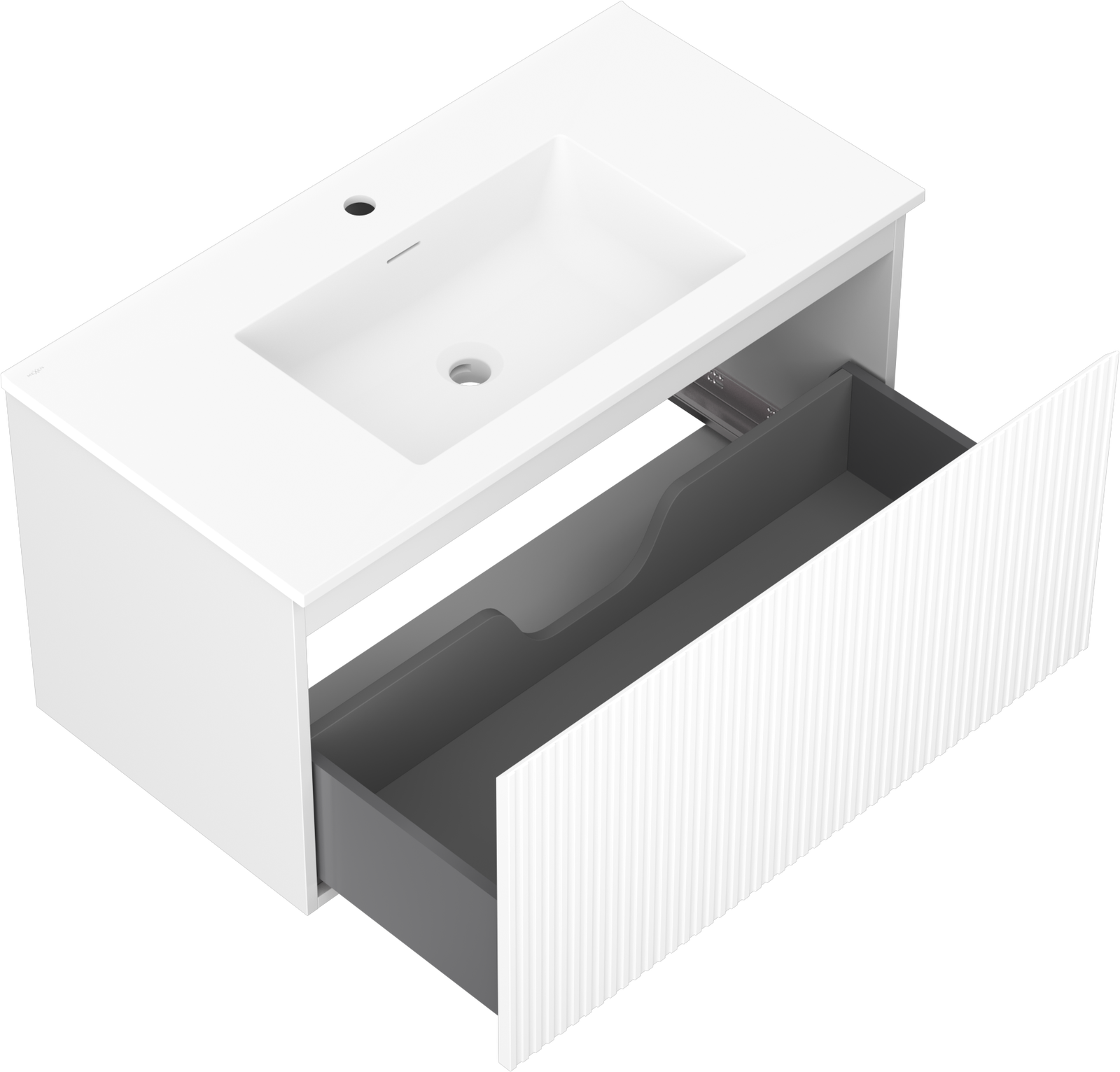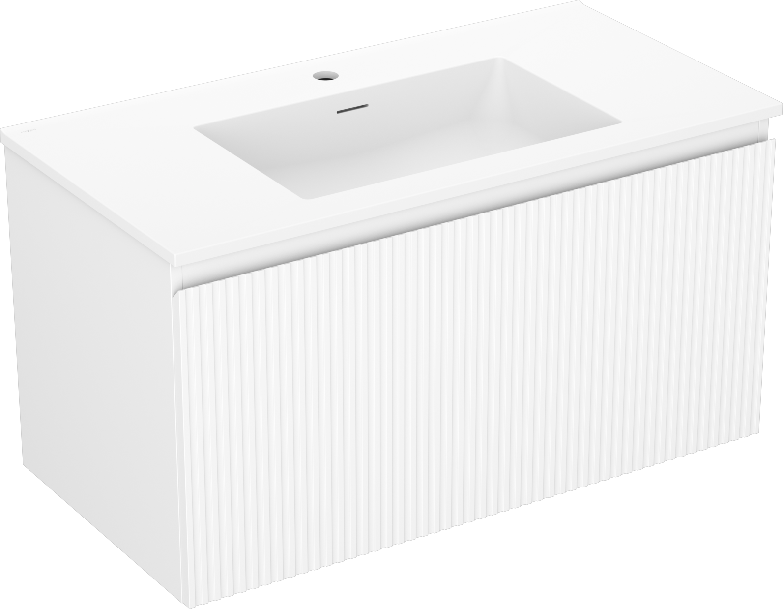 Mexen Rivel meuble de salle de bains 90 cm avec lavabo Otis, 1 tiroir, cannelé, blanc mat - 91A20-09047-1-BF01-W18M01