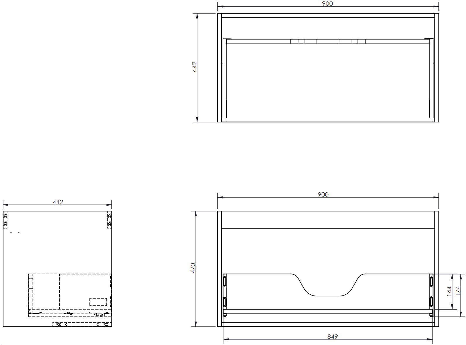 La découpe dans le tiroir est conçue de manière à accueillir le siphon, qui est nécessaire dans les installations de lavabo. Ainsi, le meuble peut être installé de manière pleinement fonctionnelle, sans devoir renoncer à l'espace du tiroir au profit de l'installation.