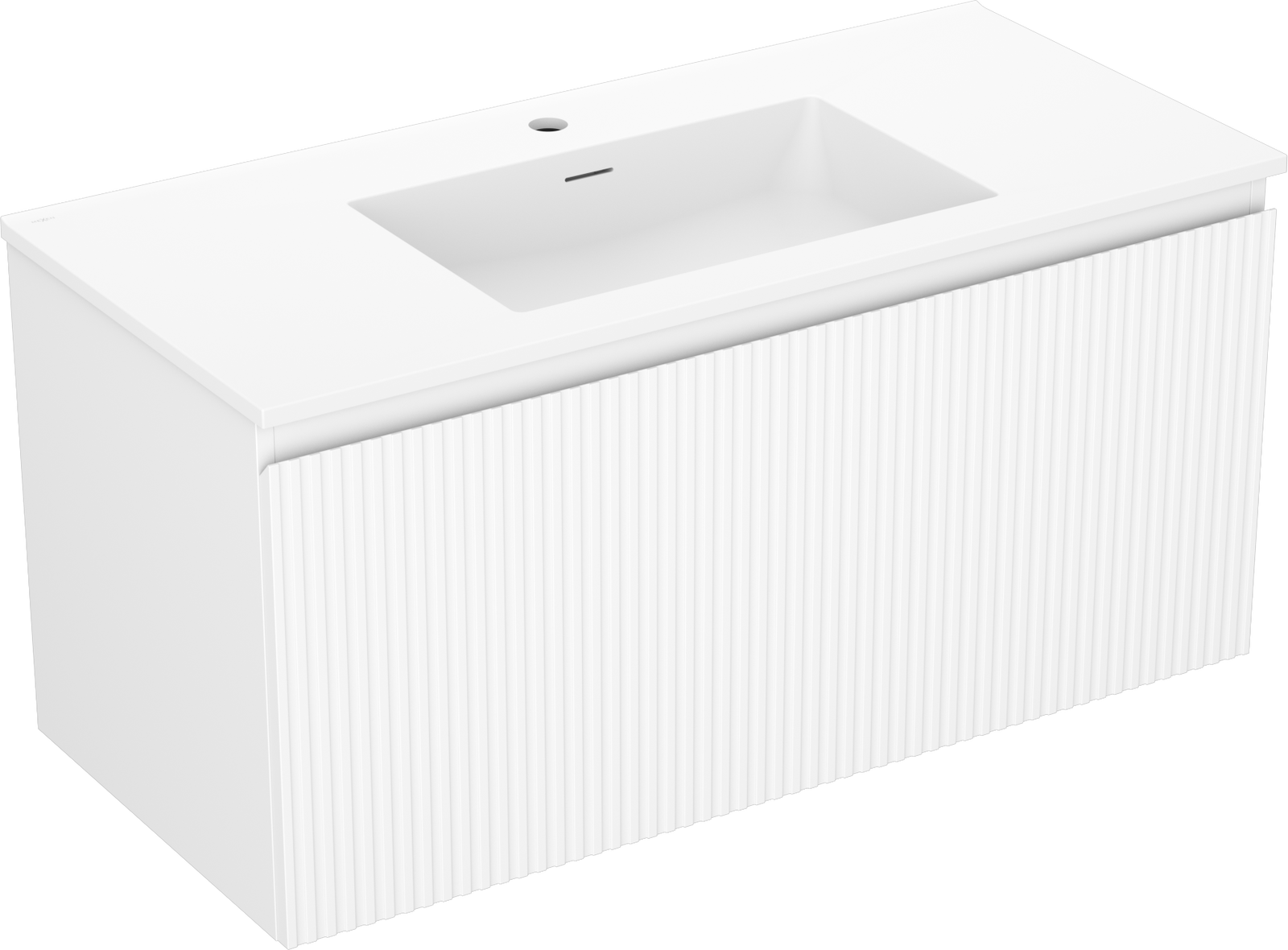Mexen Rivel meuble de salle de bain 100 cm avec lavabo Otis, 1 tiroir, rainuré, blanc mat - 91A20-10047-1-BF01-W18M01
