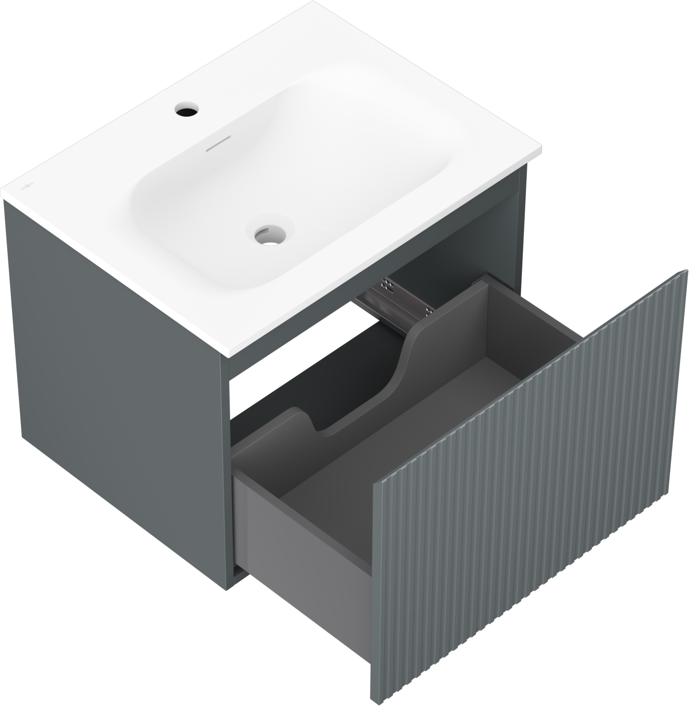 La découpe dans le tiroir est conçue de manière à accueillir le siphon, qui est nécessaire dans les installations de lavabo. Ainsi, le meuble peut être installé de manière pleinement fonctionnelle, sans devoir renoncer à l'espace du tiroir au profit de l'installation.