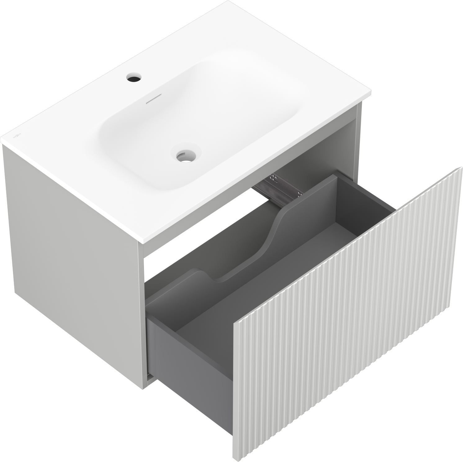 La découpe dans le tiroir est conçue de manière à accueillir le siphon, qui est nécessaire dans les installations de lavabo. Ainsi, le meuble peut être installé de manière pleinement fonctionnelle, sans devoir renoncer à l'espace du tiroir au profit de l'installation.
