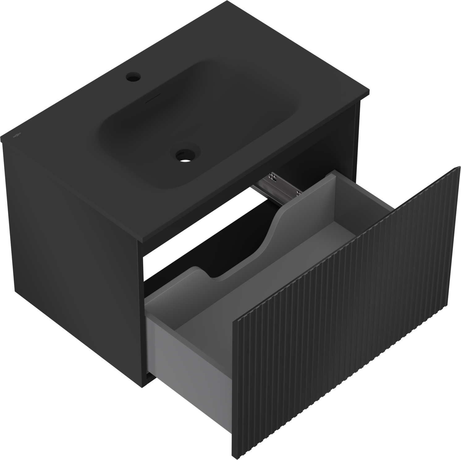 La découpe dans le tiroir est conçue de manière à accueillir le siphon, qui est nécessaire dans les installations de lavabo. Ainsi, le meuble peut être installé de manière pleinement fonctionnelle, sans devoir renoncer à l'espace du tiroir au profit de l'installation.