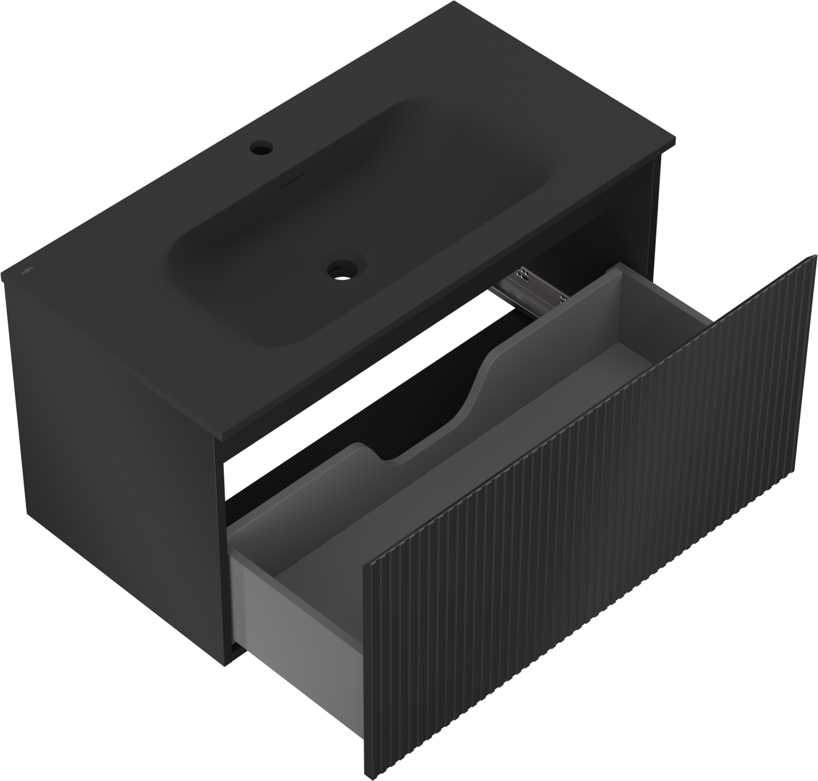 La découpe dans le tiroir est conçue de manière à accueillir le siphon, qui est nécessaire dans les installations de lavabo. Ainsi, le meuble peut être installé de manière pleinement fonctionnelle, sans devoir renoncer à l'espace du tiroir au profit de l'installation.