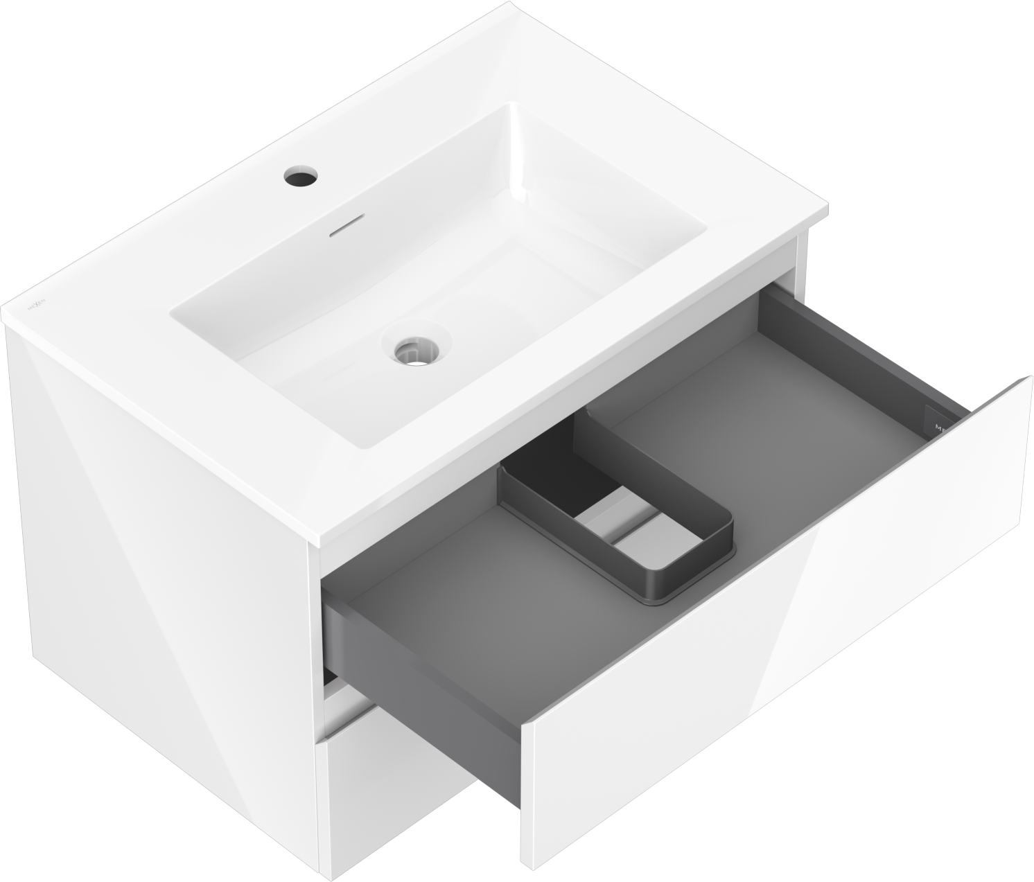 La découpe dans le tiroir est conçue de manière à accueillir le siphon, qui est nécessaire dans les installations de lavabo. Ainsi, le meuble peut être installé de manière pleinement fonctionnelle, sans devoir renoncer à l'espace du tiroir au profit de l'installation.