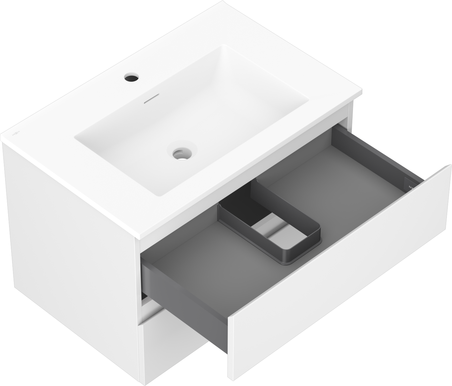 La découpe dans le tiroir est conçue de manière à accueillir le siphon, qui est nécessaire dans les installations de lavabo. Ainsi, le meuble peut être installé de manière pleinement fonctionnelle, sans devoir renoncer à l'espace du tiroir au profit de l'installation.