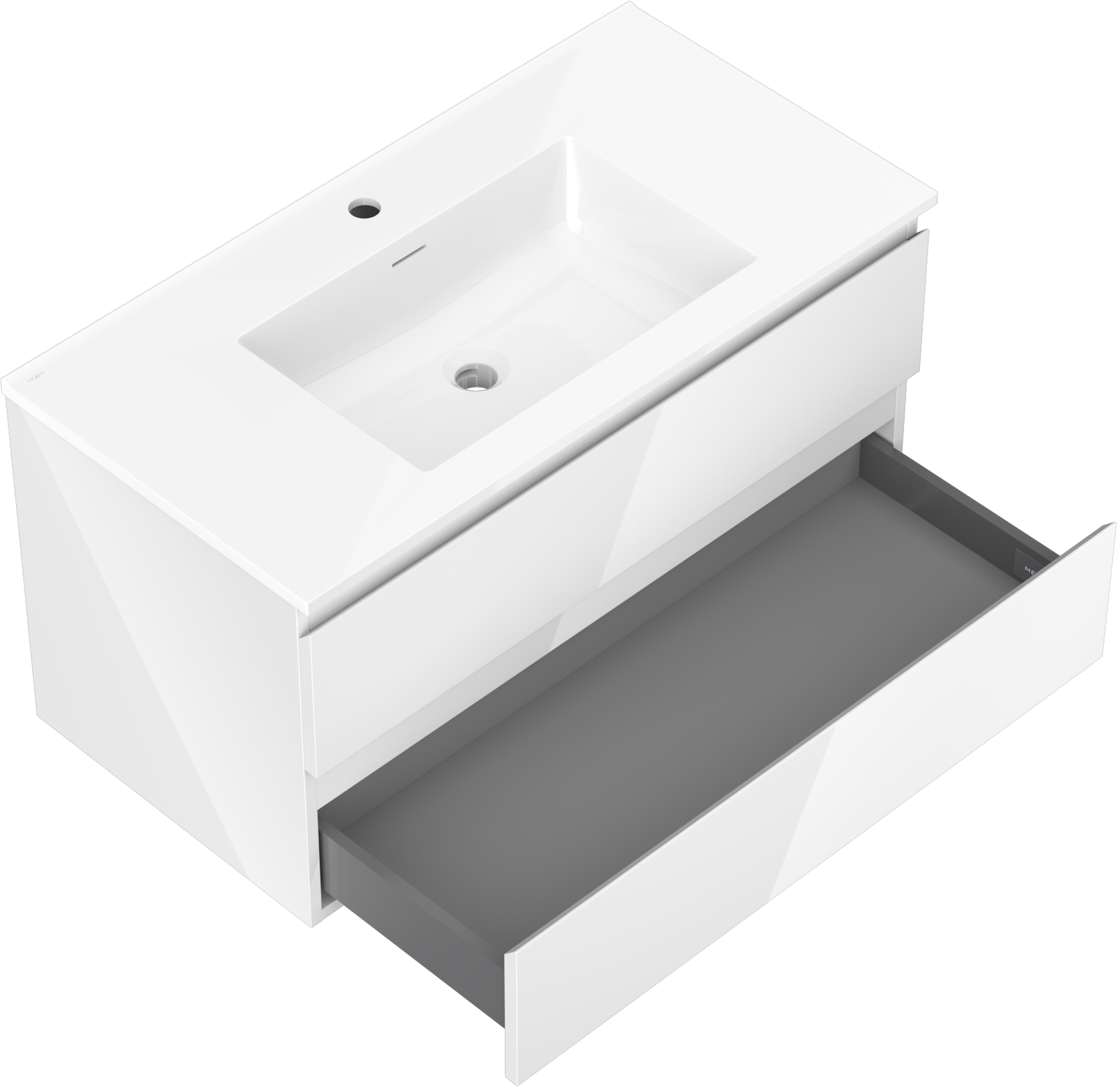 Mexen Orio armoire de salle de bain 90 cm avec lavabo Otis, 2 tiroirs, blanc brillant - 91A10-09047-2-BFF00-W18M00