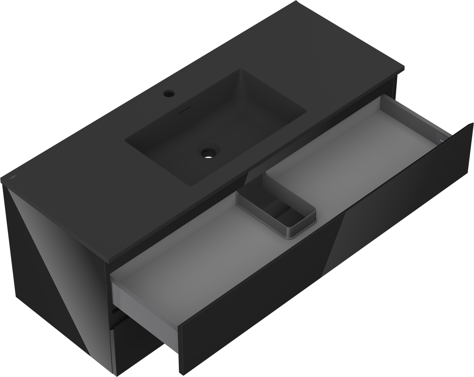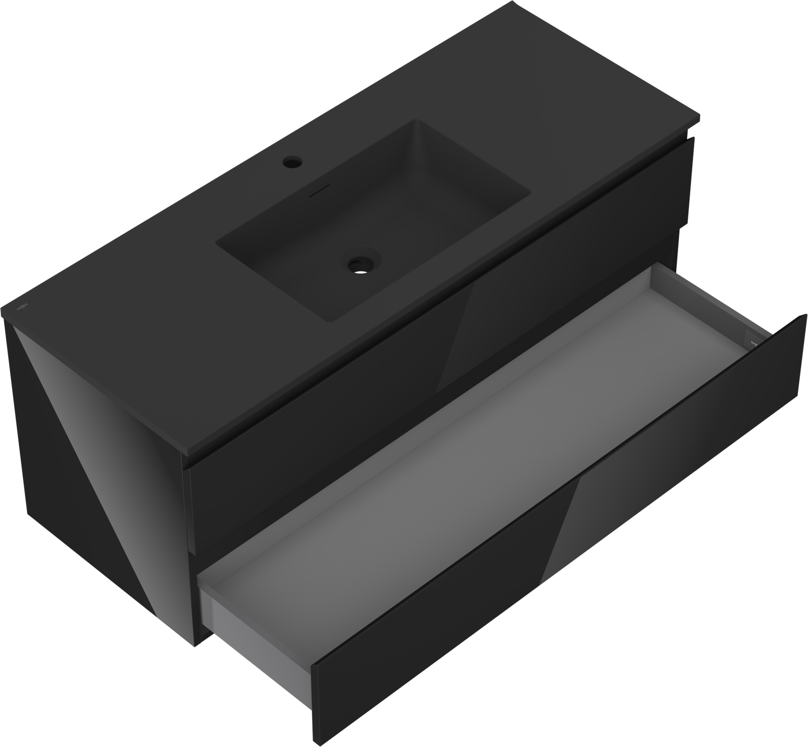 Mexen Orio meuble de salle de bains 120 cm avec lavabo Otis, 2 tiroirs, noir brillant/noir mat - 91A10-12047-2-BFF70-W18M71