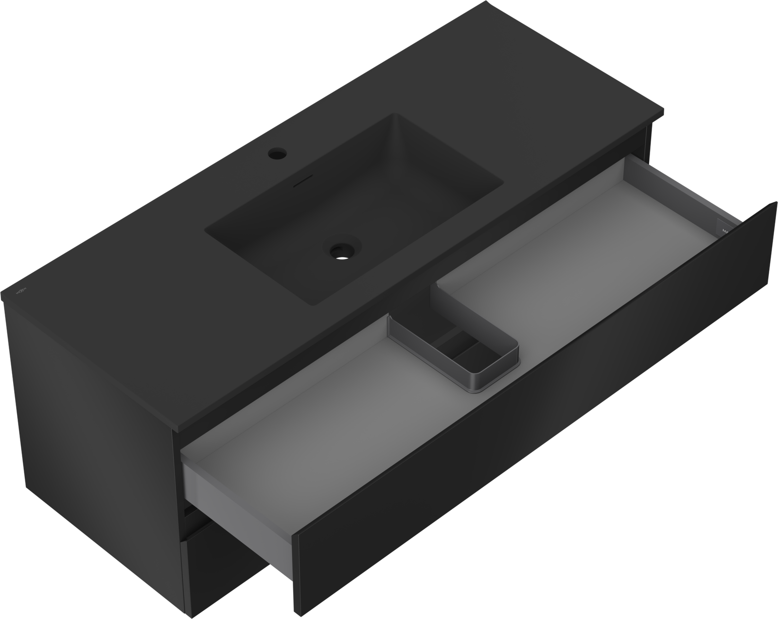 Mexen Orio armoire de salle de bains 120 cm avec lavabo Otis, 2 tiroirs, noir mat - 91A10-12047-2-BFF71-W18M71