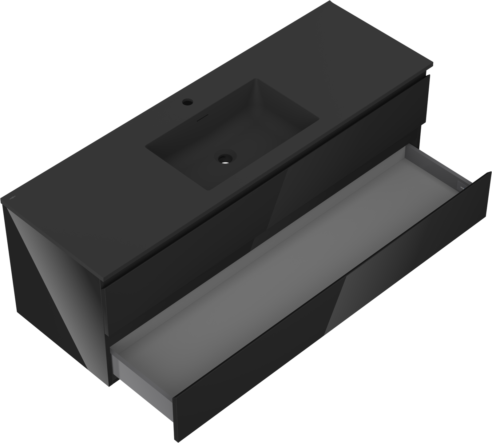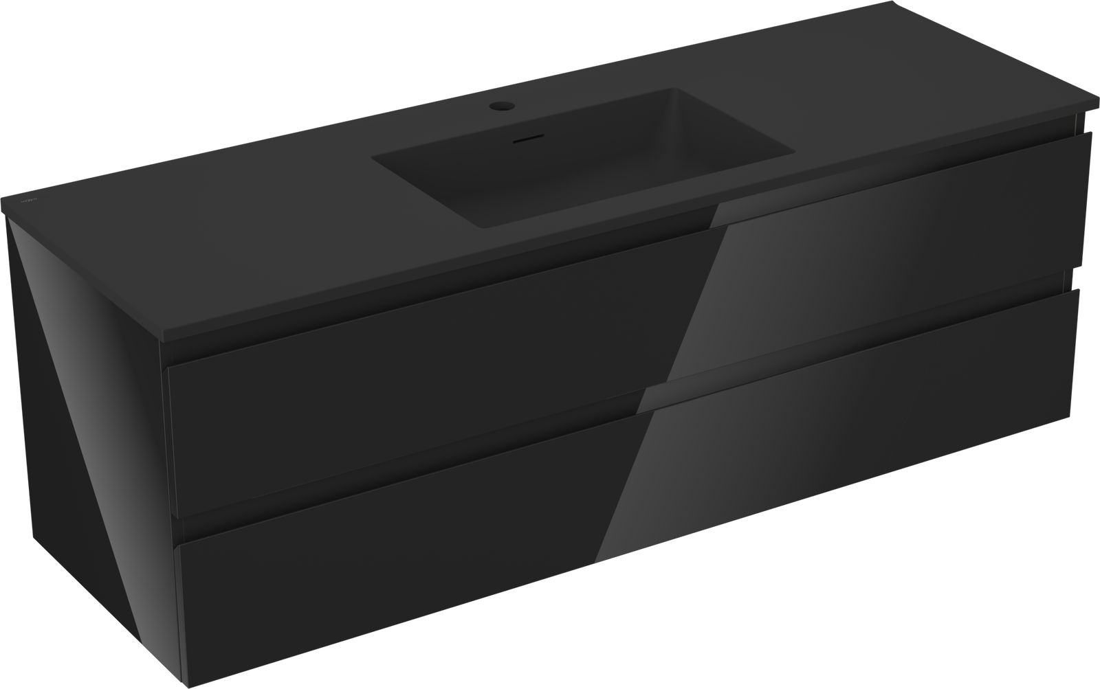 Mexen Orio meuble de salle de bain 140 cm avec lavabo Otis, 2 tiroirs, noir brillant/noir mat - 91A10-14047-2-BFF70-W18M71