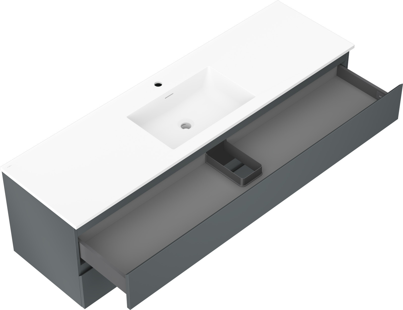 Mexen Orio meuble de salle de bains 160 cm avec lavabo Otis, 2 tiroirs, graphite mat/blanc mat - 91A10-16047-2-BFF66-W18M01
