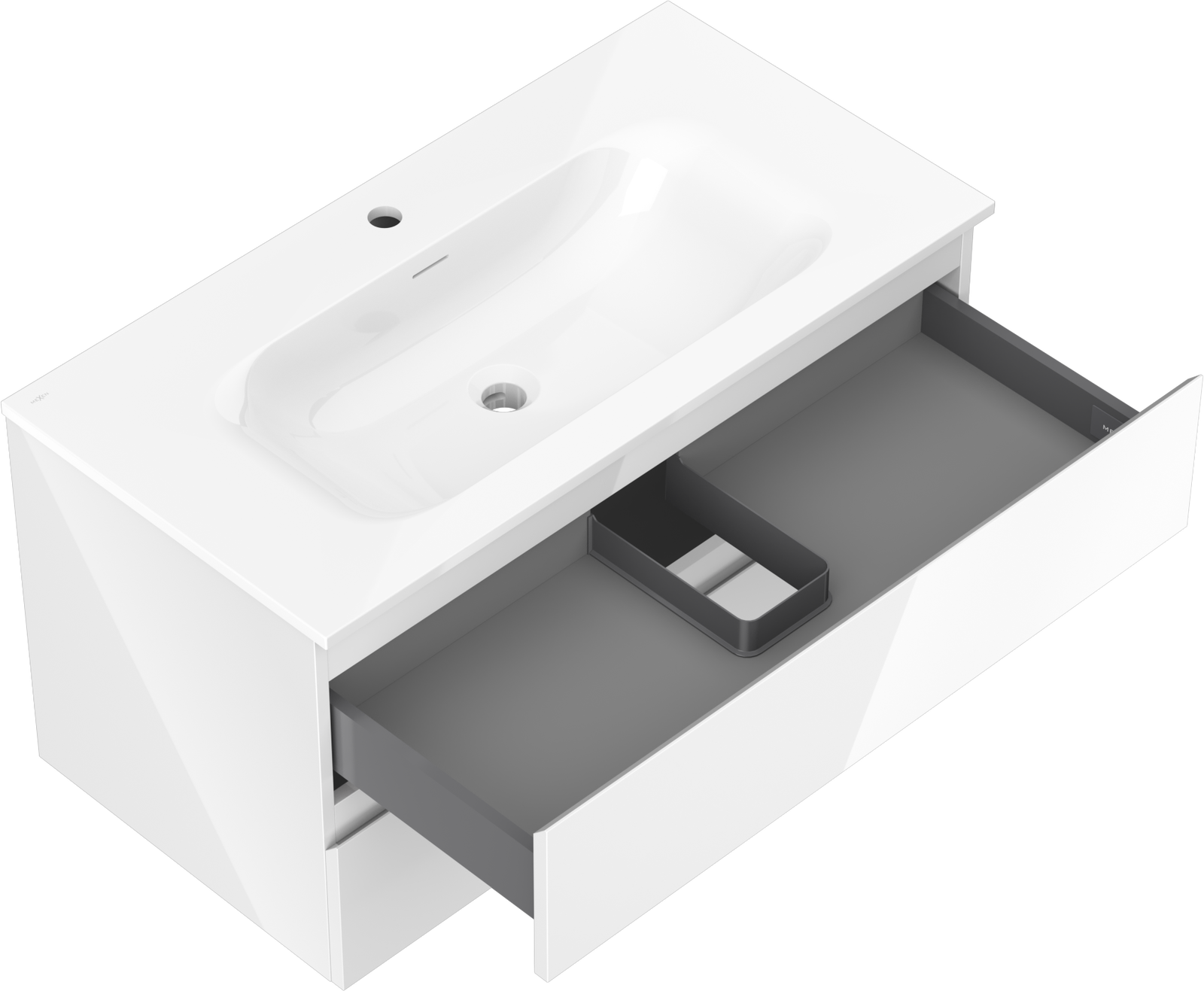 La découpe dans le tiroir est conçue de manière à accueillir le siphon, qui est nécessaire dans les installations de lavabo. Ainsi, le meuble peut être installé de manière pleinement fonctionnelle, sans devoir renoncer à l'espace du tiroir au profit de l'installation.