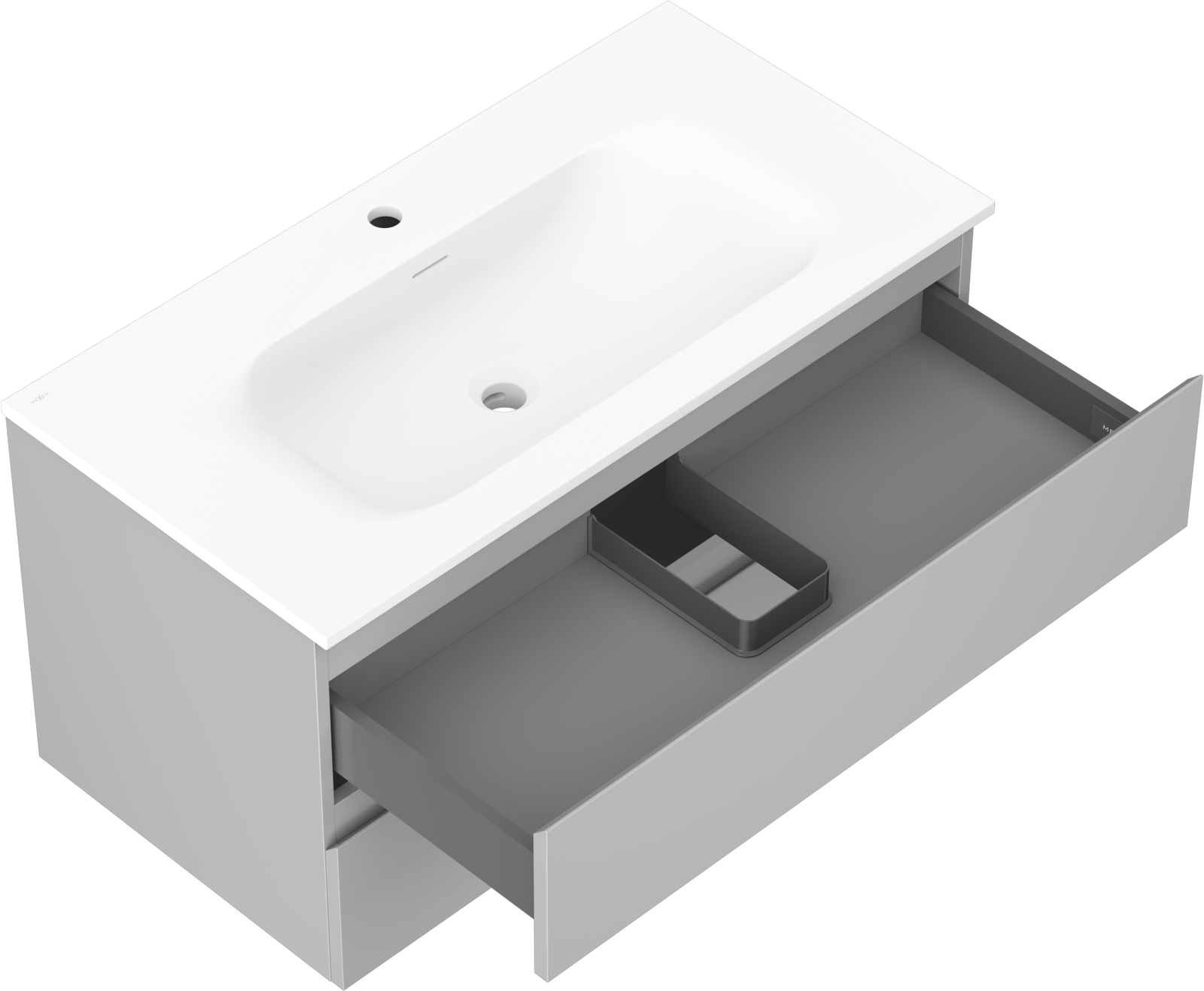 La découpe dans le tiroir est conçue de manière à accueillir le siphon, qui est nécessaire dans les installations de lavabo. Ainsi, le meuble peut être installé de manière pleinement fonctionnelle, sans devoir renoncer à l'espace du tiroir au profit de l'installation.