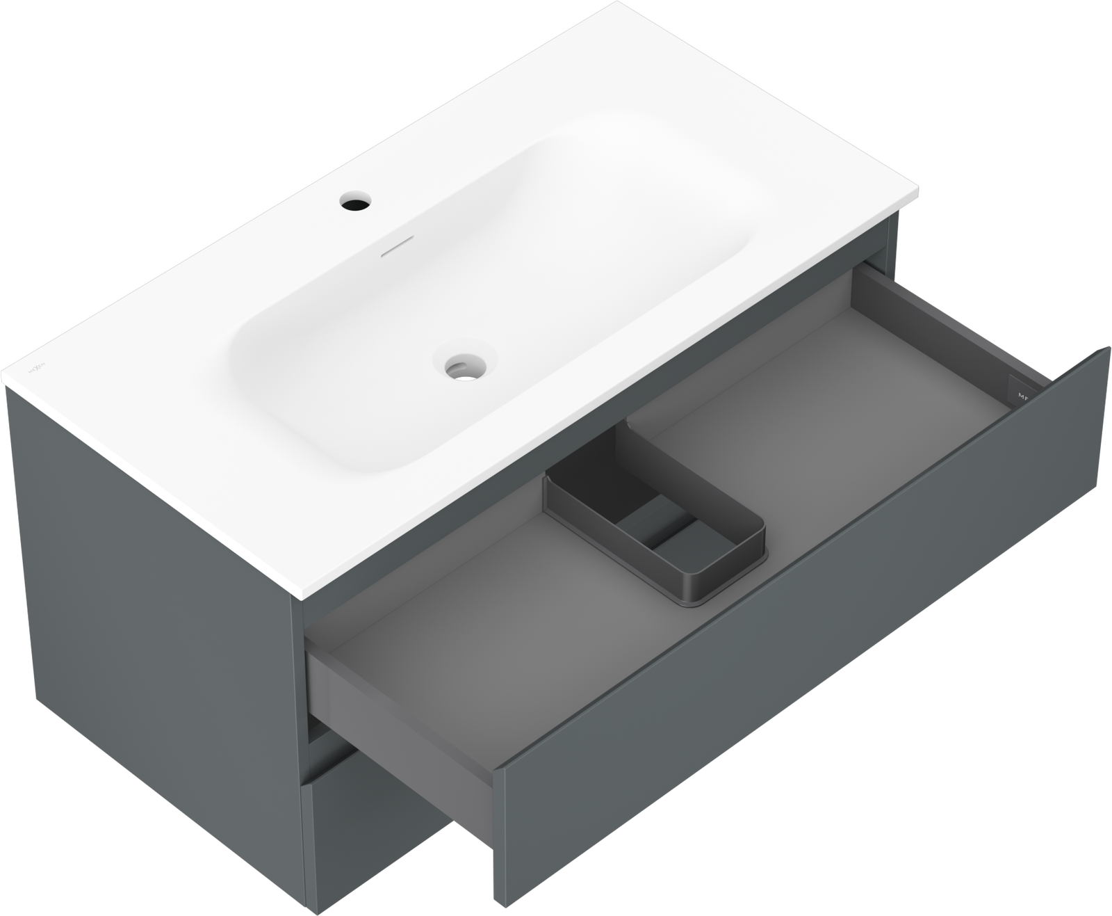 La découpe dans le tiroir est conçue de manière à accueillir le siphon, qui est nécessaire dans les installations de lavabo. Ainsi, le meuble peut être installé de manière pleinement fonctionnelle, sans devoir renoncer à l'espace du tiroir au profit de l'installation.