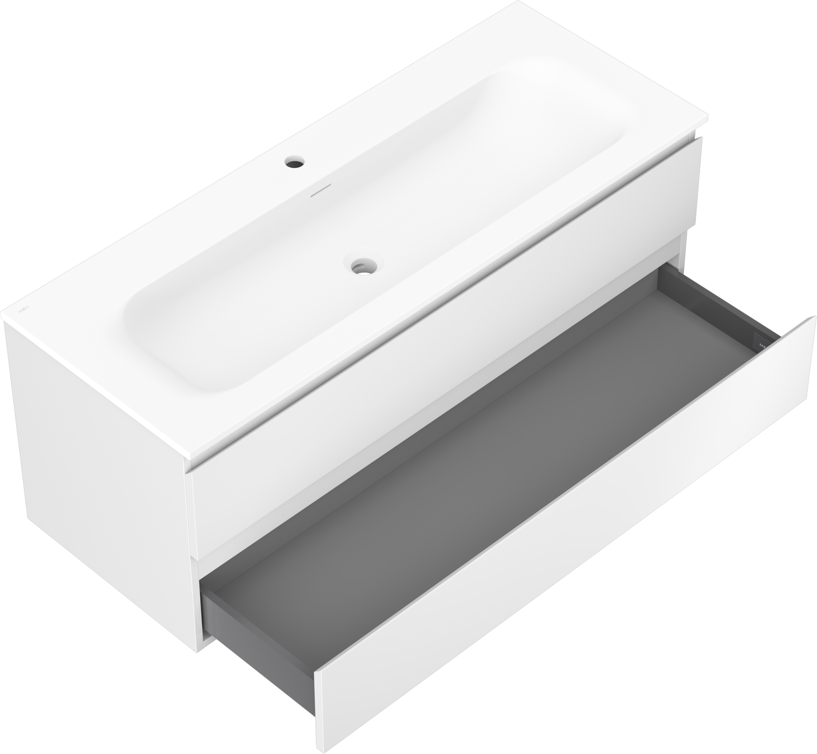 La découpe dans le tiroir est conçue de manière à accueillir le siphon, qui est nécessaire dans les installations de lavabo. Ainsi, le meuble peut être installé de manière pleinement fonctionnelle, sans devoir renoncer à l'espace du tiroir au profit de l'installation.