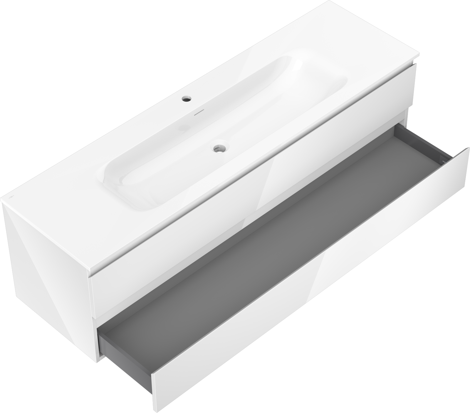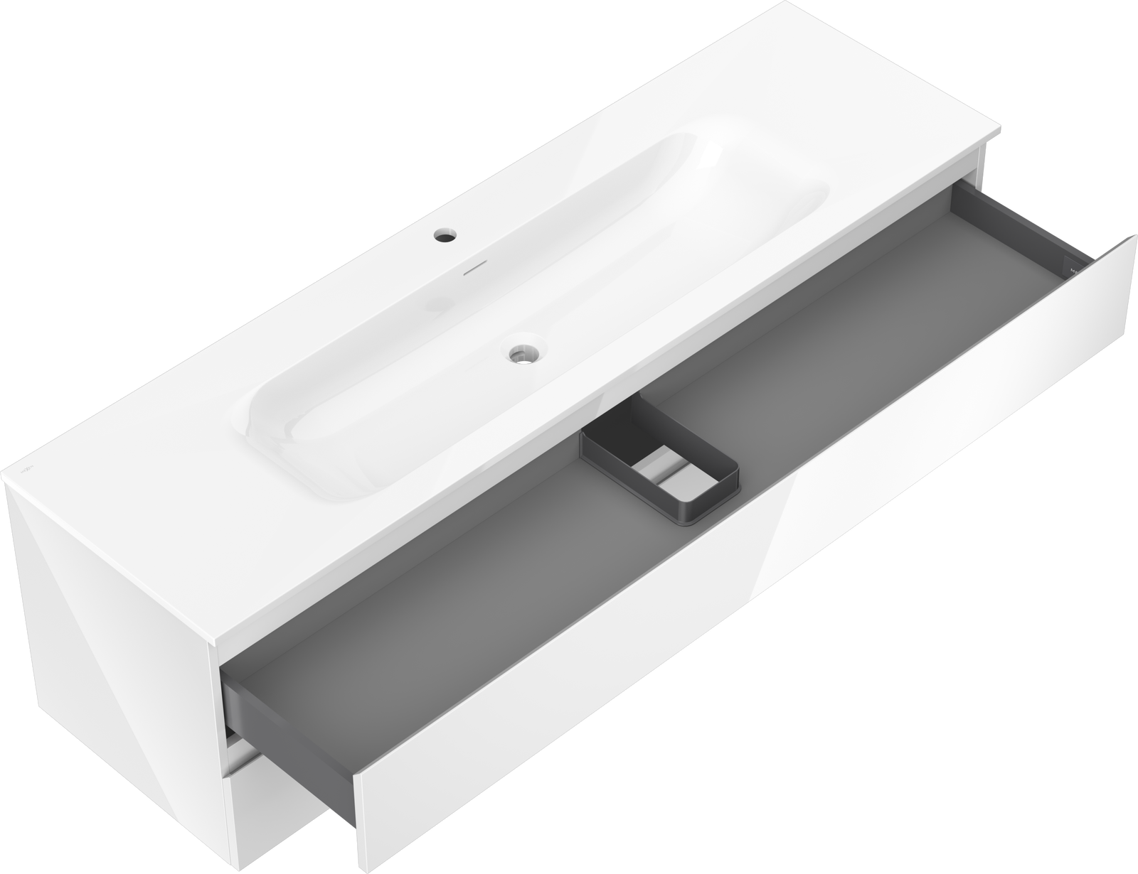 La découpe dans le tiroir est conçue de manière à accueillir le siphon, qui est nécessaire dans les installations de lavabo. Ainsi, le meuble peut être installé de manière pleinement fonctionnelle, sans devoir renoncer à l'espace du tiroir au profit de l'installation.