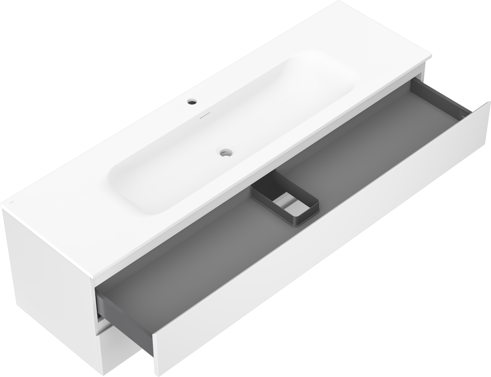 La découpe dans le tiroir est conçue de manière à accueillir le siphon, qui est nécessaire dans les installations de lavabo. Ainsi, le meuble peut être installé de manière pleinement fonctionnelle, sans devoir renoncer à l'espace du tiroir au profit de l'installation.