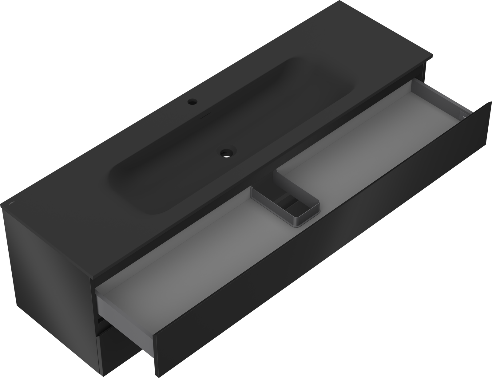 La découpe dans le tiroir est conçue de manière à accueillir le siphon, qui est nécessaire dans les installations de lavabo. Ainsi, le meuble peut être installé de manière pleinement fonctionnelle, sans devoir renoncer à l'espace du tiroir au profit de l'installation.