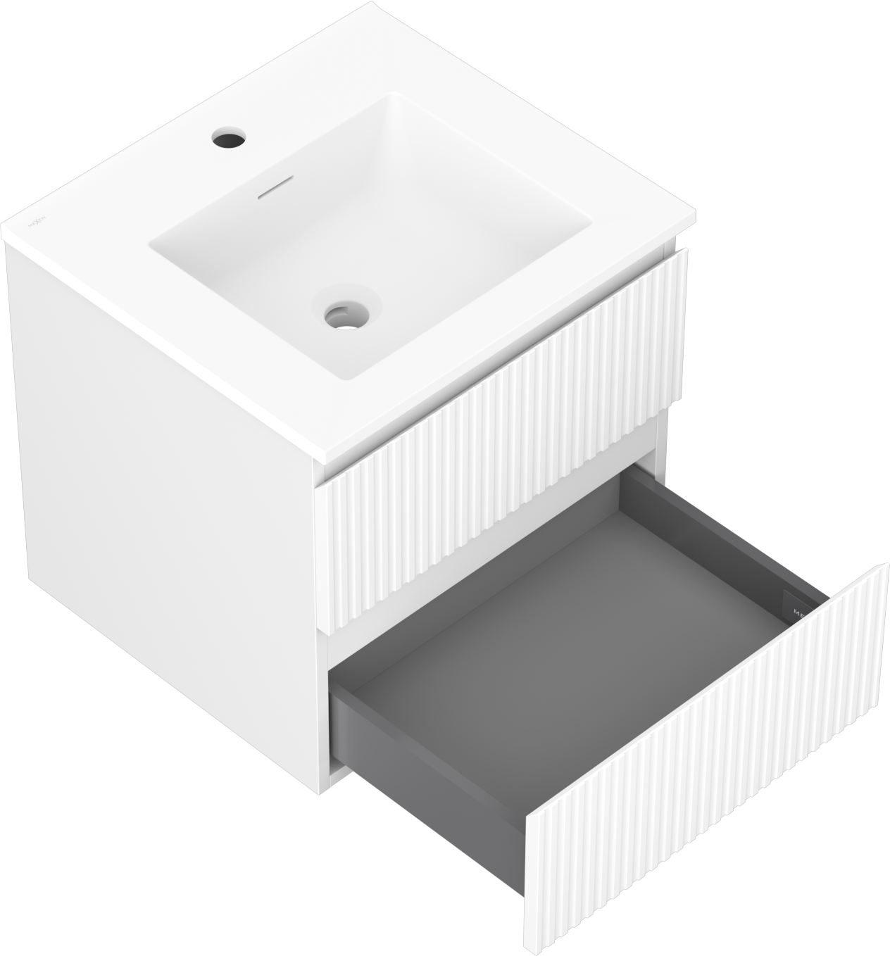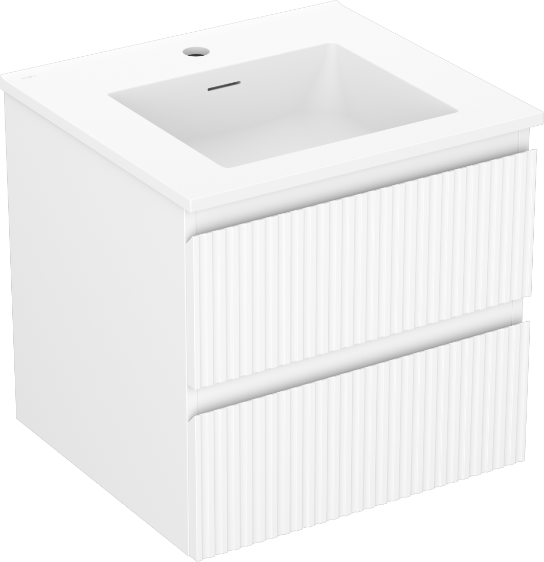 Mexen Rivel meuble de salle de bain 50 cm avec lavabo Otis, 2 tiroirs, rainuré, blanc mat - 91A20-05047-2-BFF01-W18M01