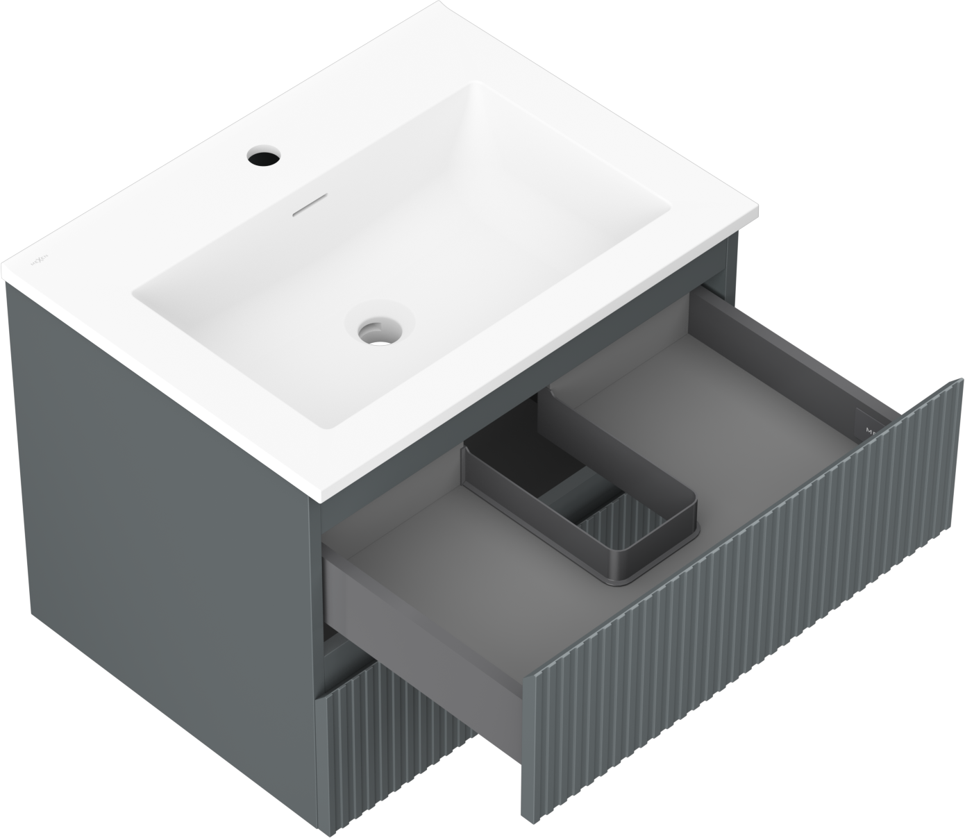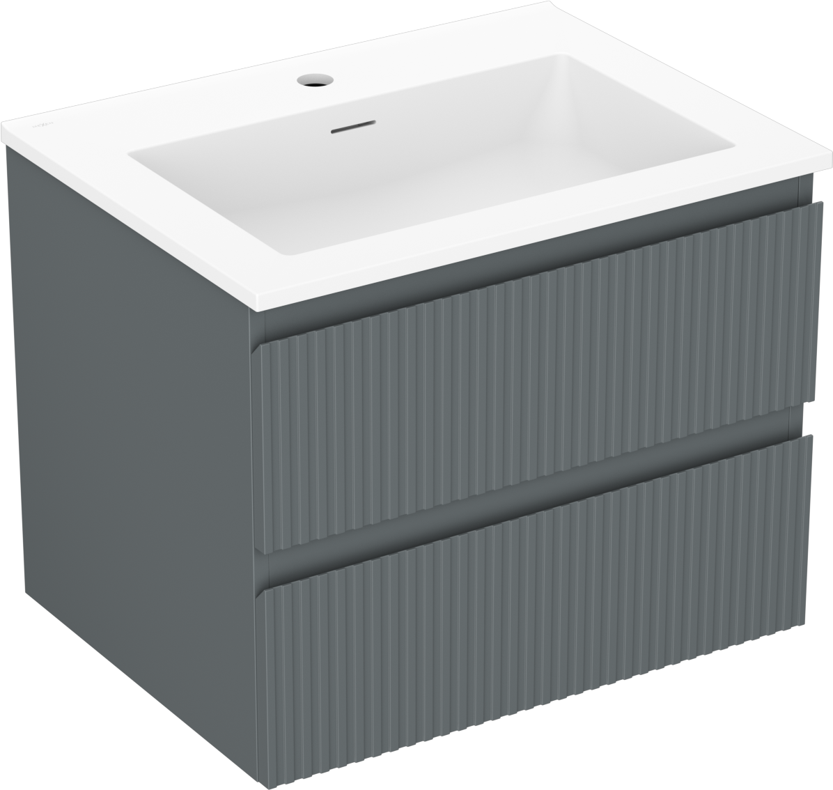 Mexen Rivel meuble de salle de bain 60 cm avec lavabo Otis, 2 tiroirs, rainuré, graphite mat/blanc mat -