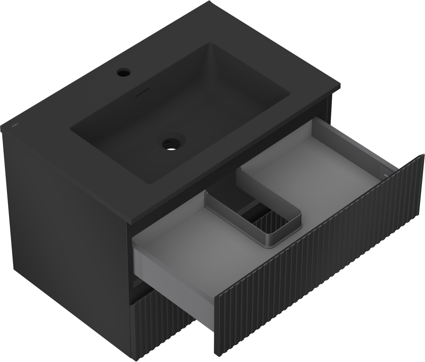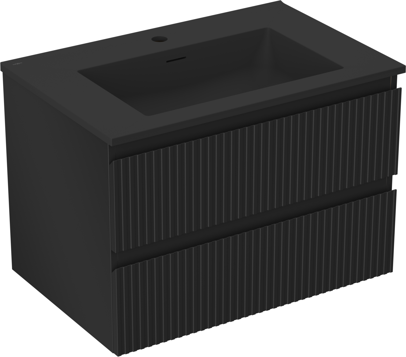 Mexen Rivel meuble de salle de bain 70 cm avec lavabo Otis, 2 tiroirs, cannelé, noir mat - 91A20-07047-2-BFF71-W18M71