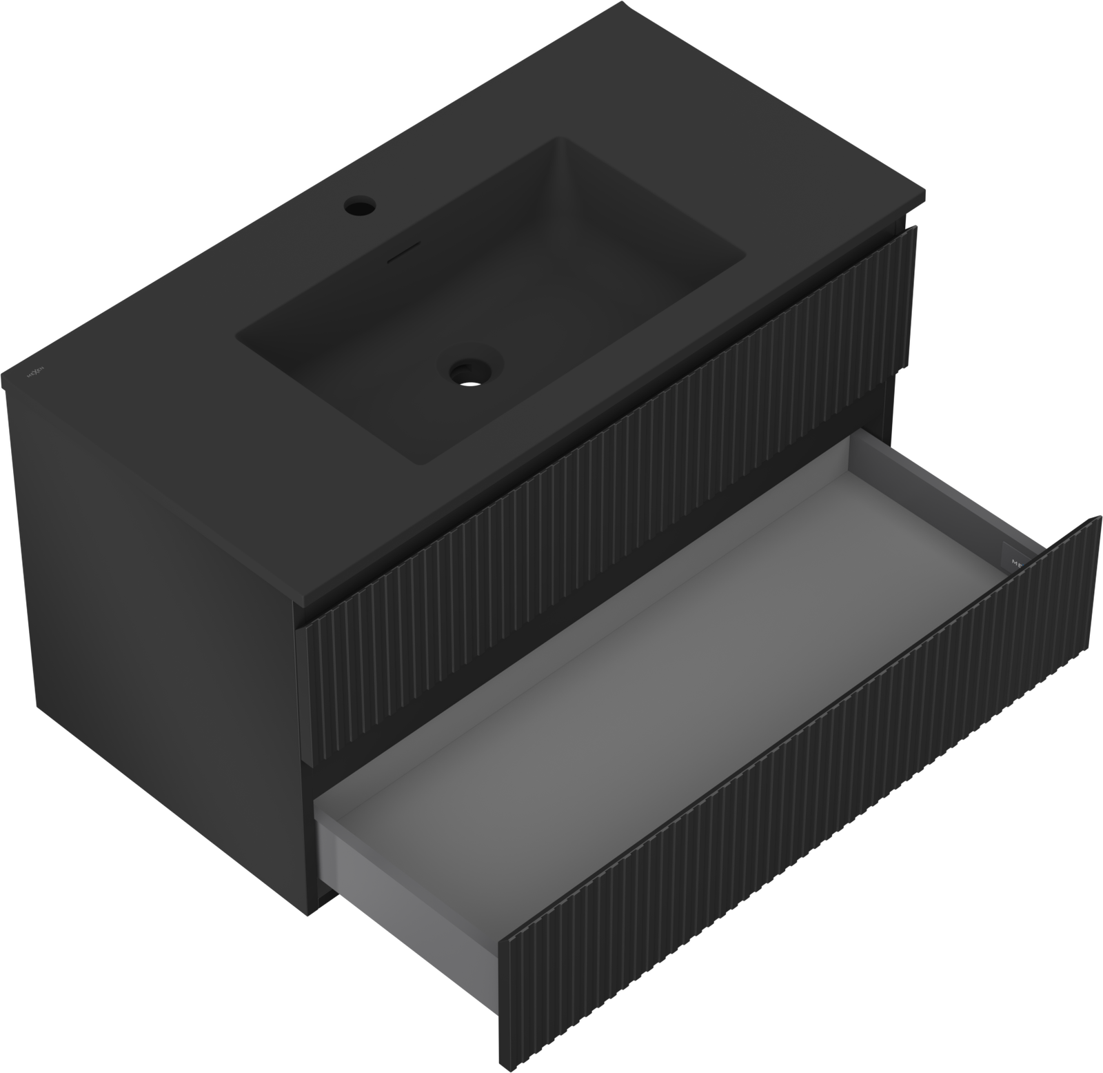 Mexen Rivel meuble de salle de bain 90 cm avec lavabo Otis, 2 tiroirs, rainuré, noir mat - 91A20-09047-2-BFF71-W18M71