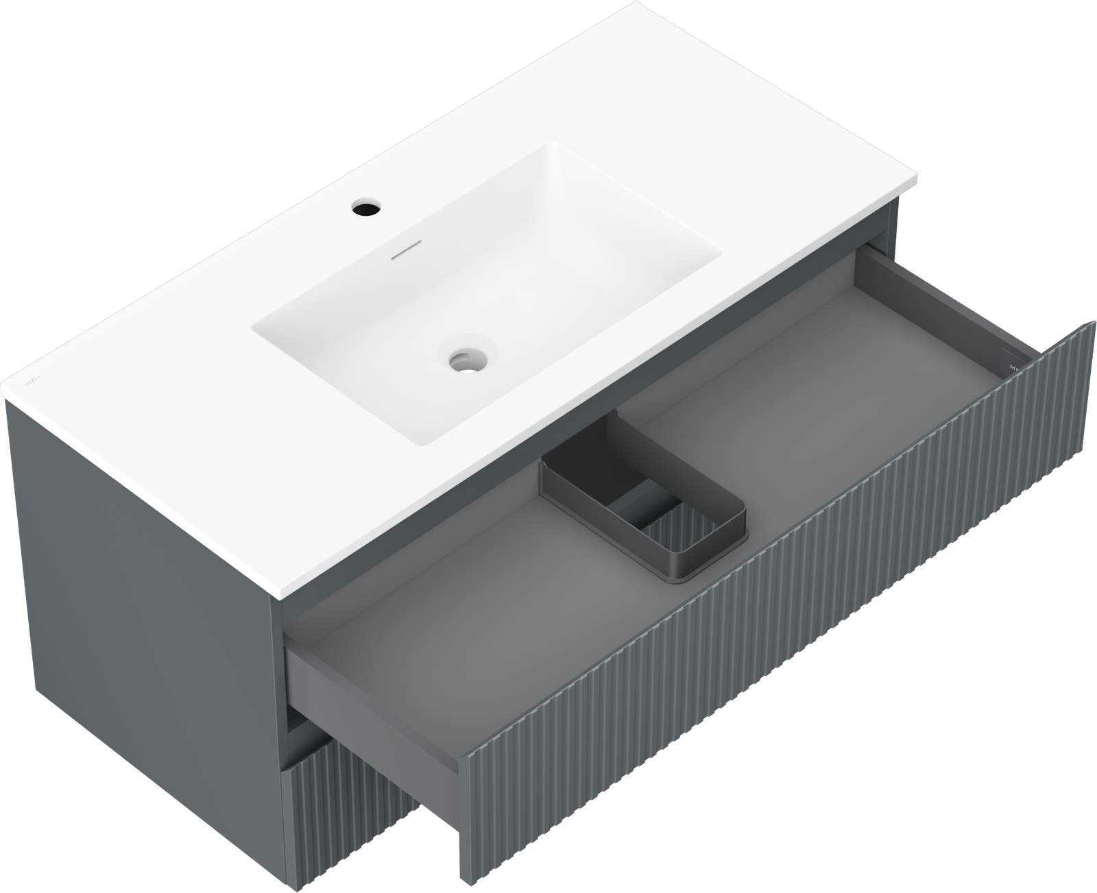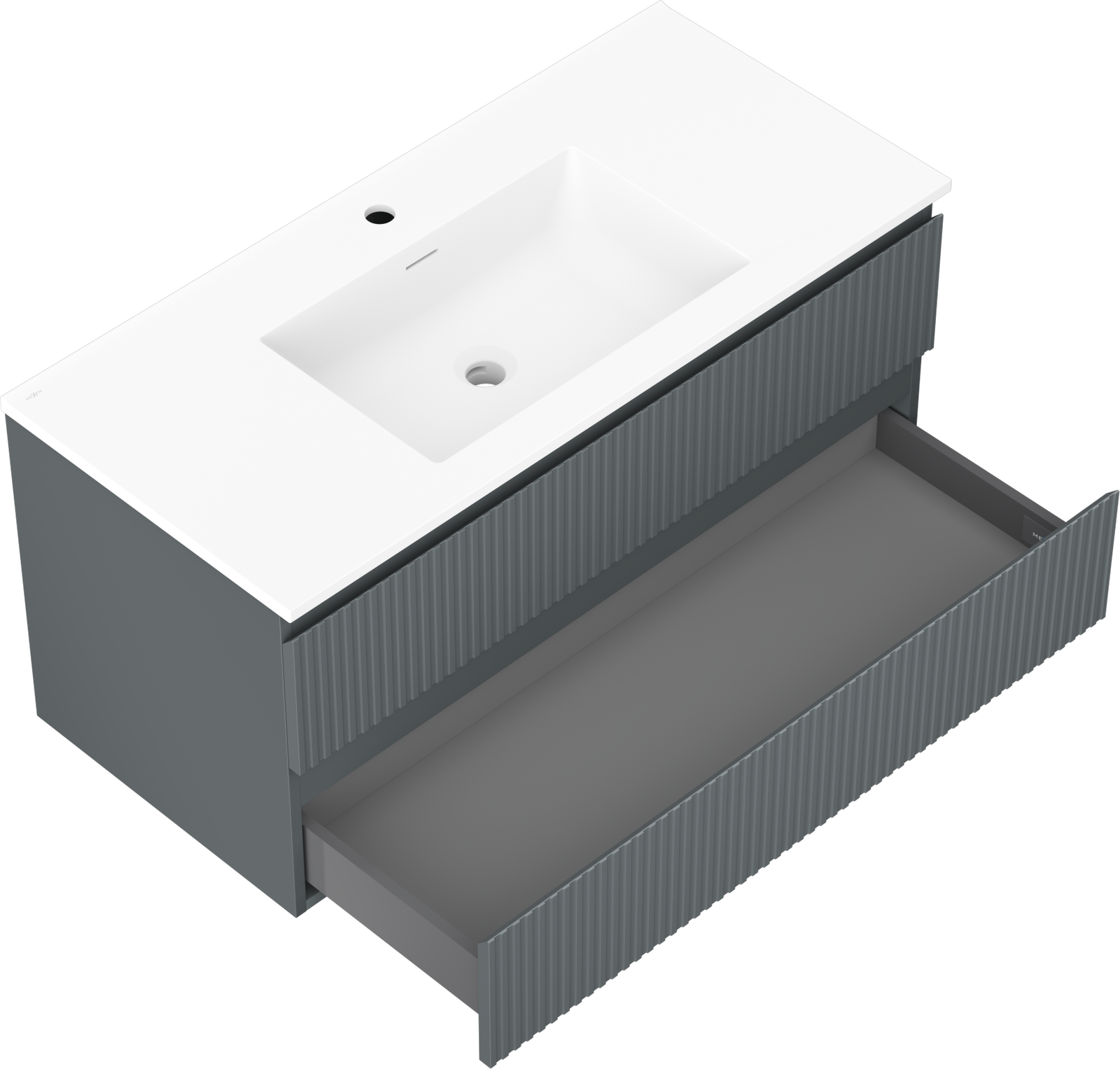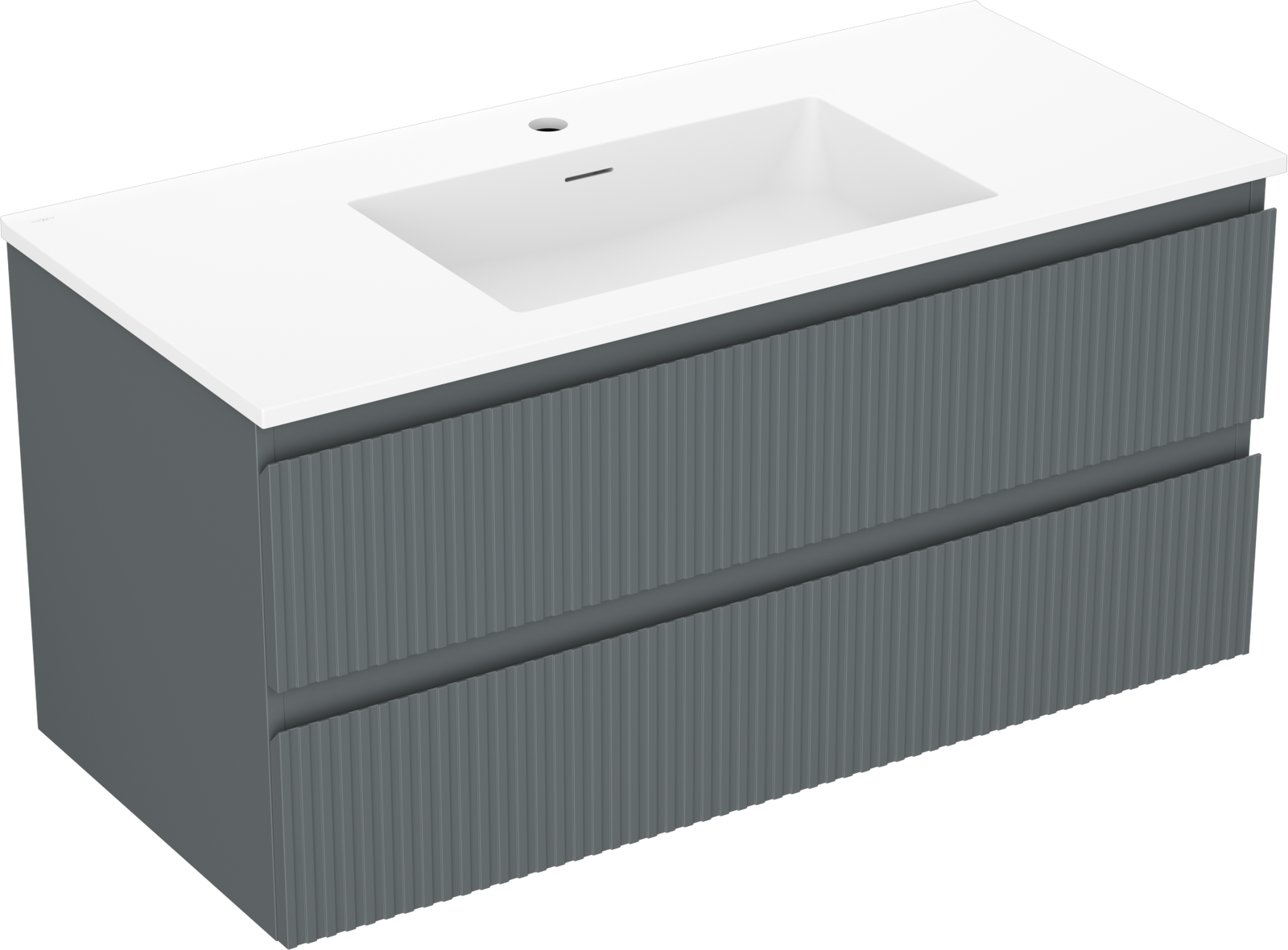Mexen Rivel armoire de salle de bain 100 cm avec lavabo Otis, 2 tiroirs, cannelée, graphite mat/blanc mat -