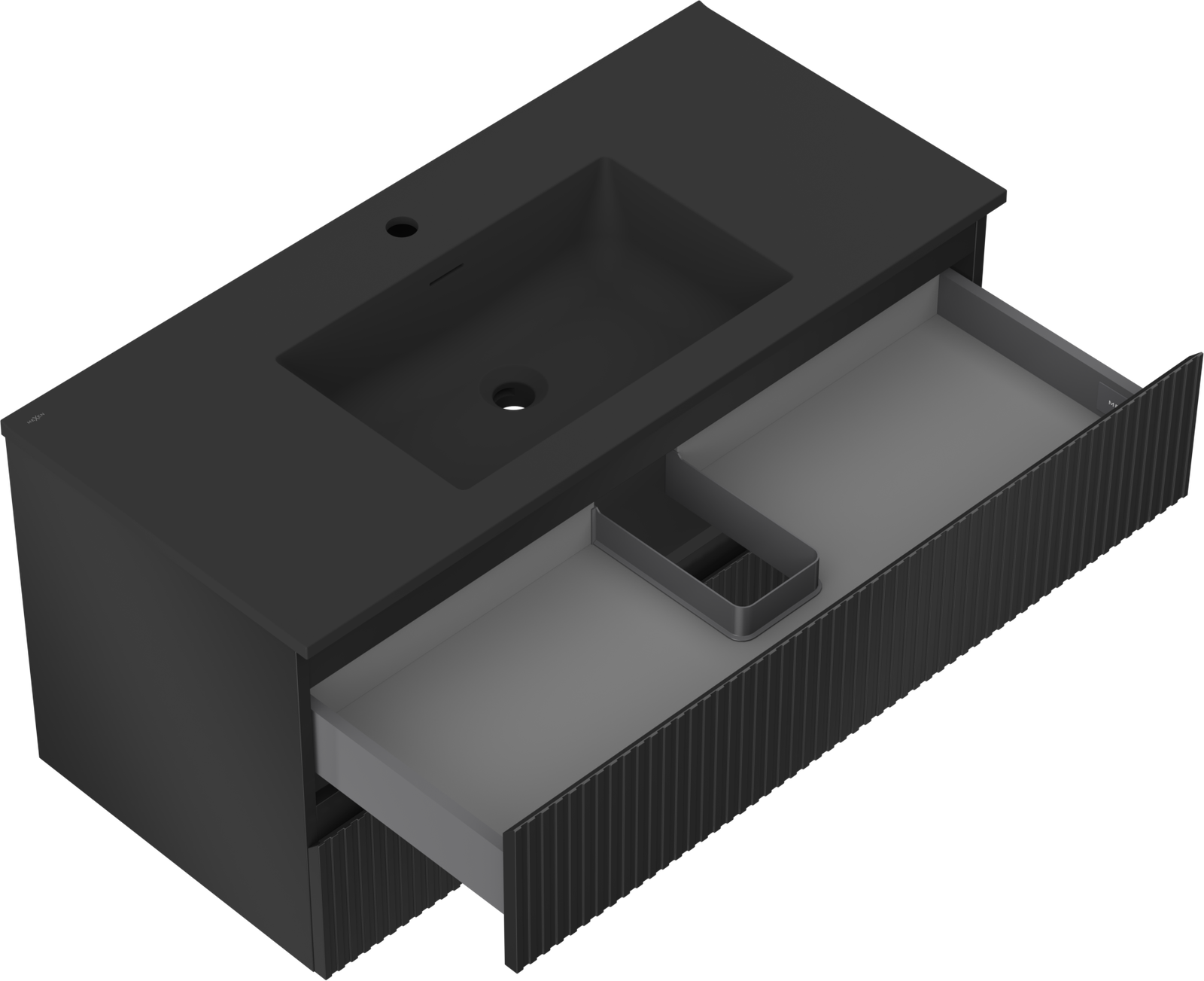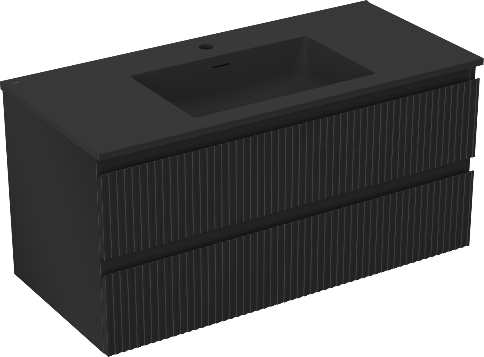Mexen Rivel meuble de salle de bain 100 cm avec lavabo Otis, 2 tiroirs, rainuré, noir mat - 91A20-10047-2-BFF71-W18M71