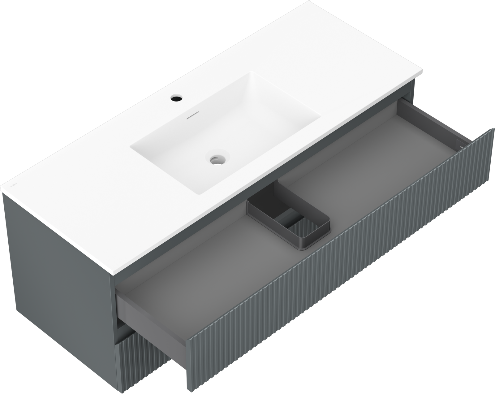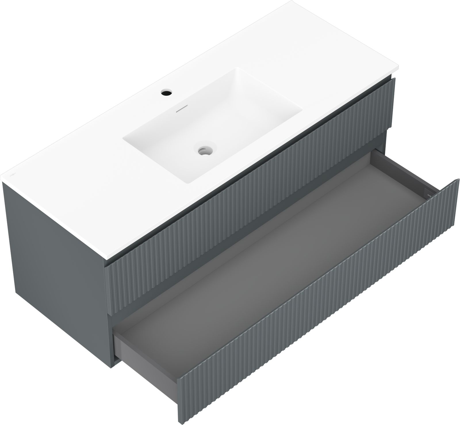 Mexen Rivel meuble de salle de bain 120 cm avec lavabo Otis, 2 tiroirs, rainuré, graphite mat/blanc mat -
