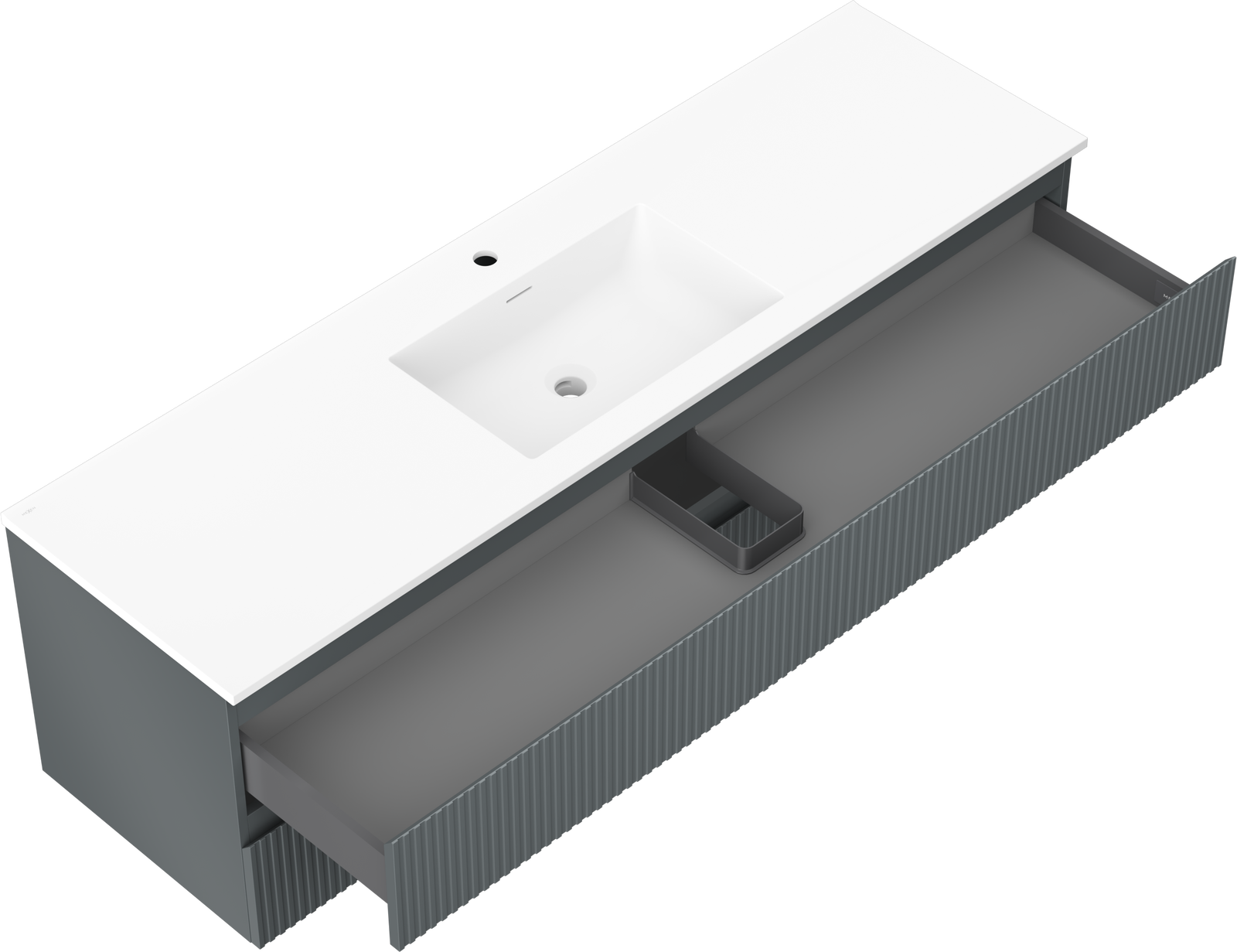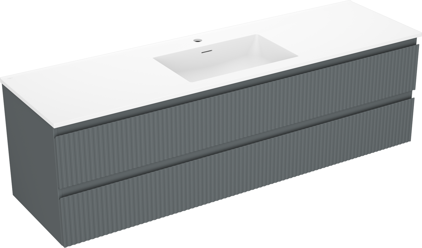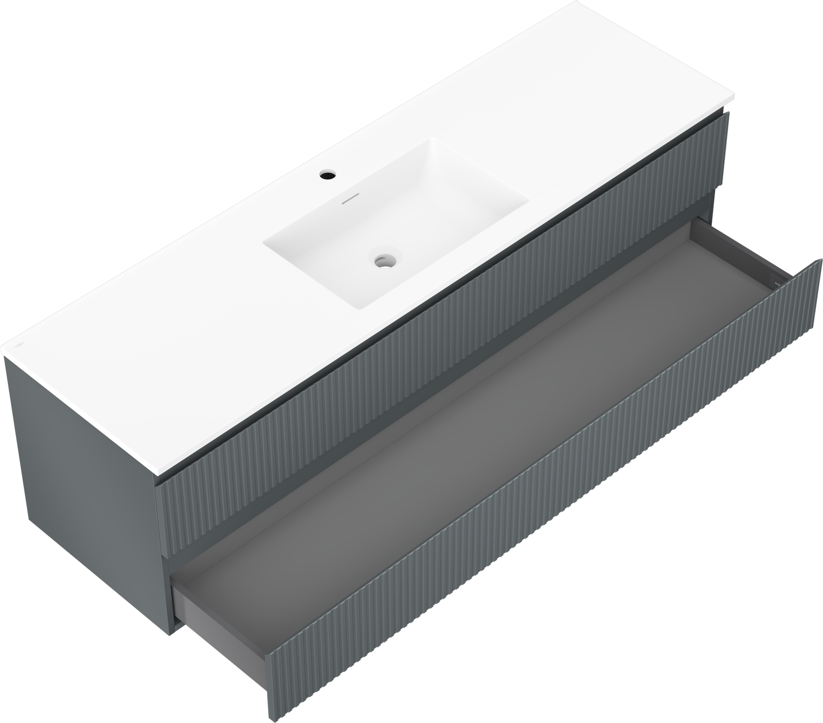 Mexen Rivel meuble de salle de bain 160 cm avec lavabo Otis, 2 tiroirs, rainuré, graphite mat/blanc mat -