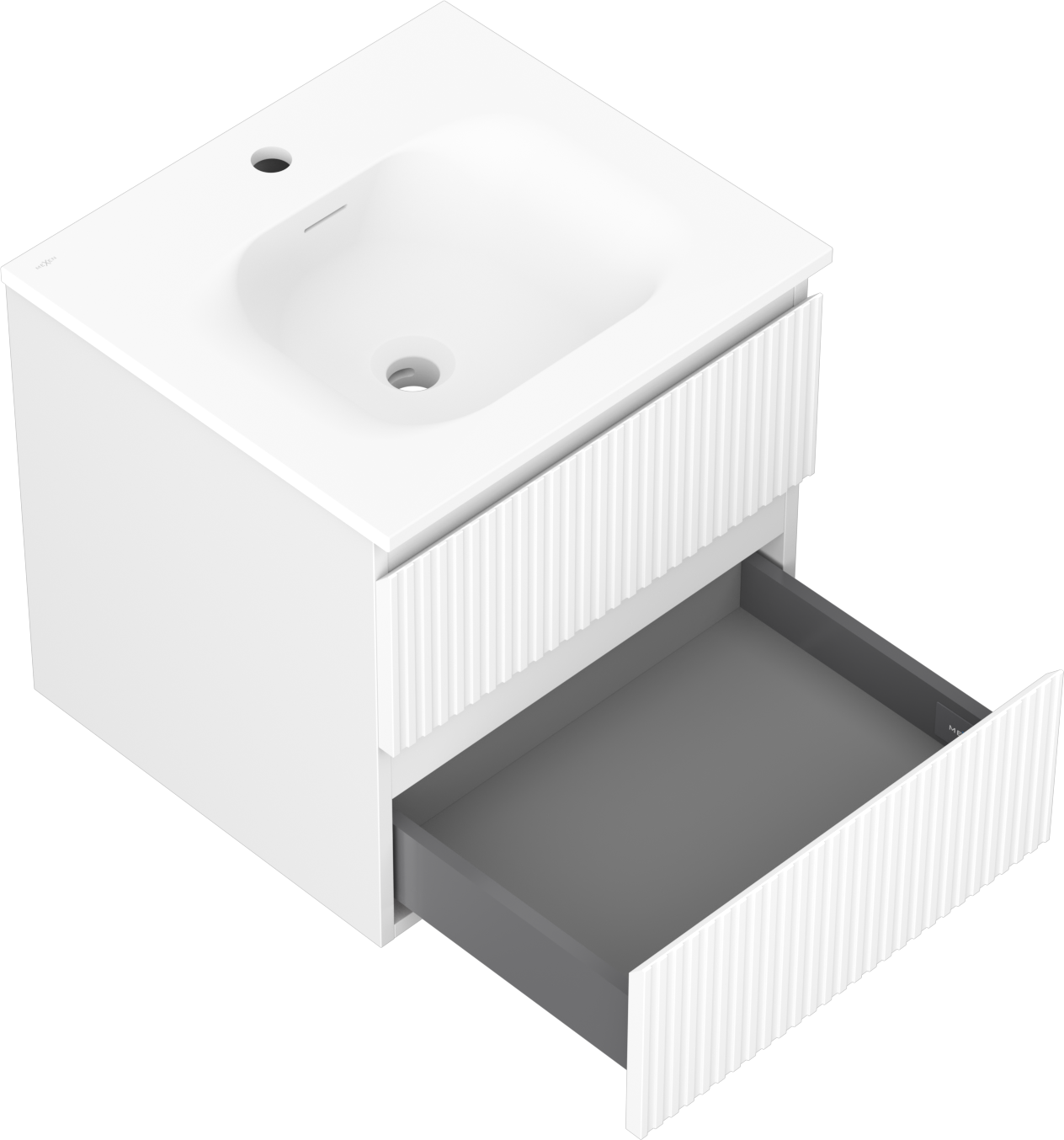 La découpe dans le tiroir est conçue de manière à accueillir le siphon, qui est nécessaire dans les installations de lavabo. Ainsi, le meuble peut être installé de manière pleinement fonctionnelle, sans devoir renoncer à l'espace du tiroir au profit de l'installation.