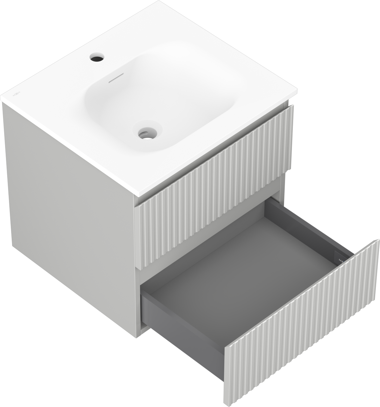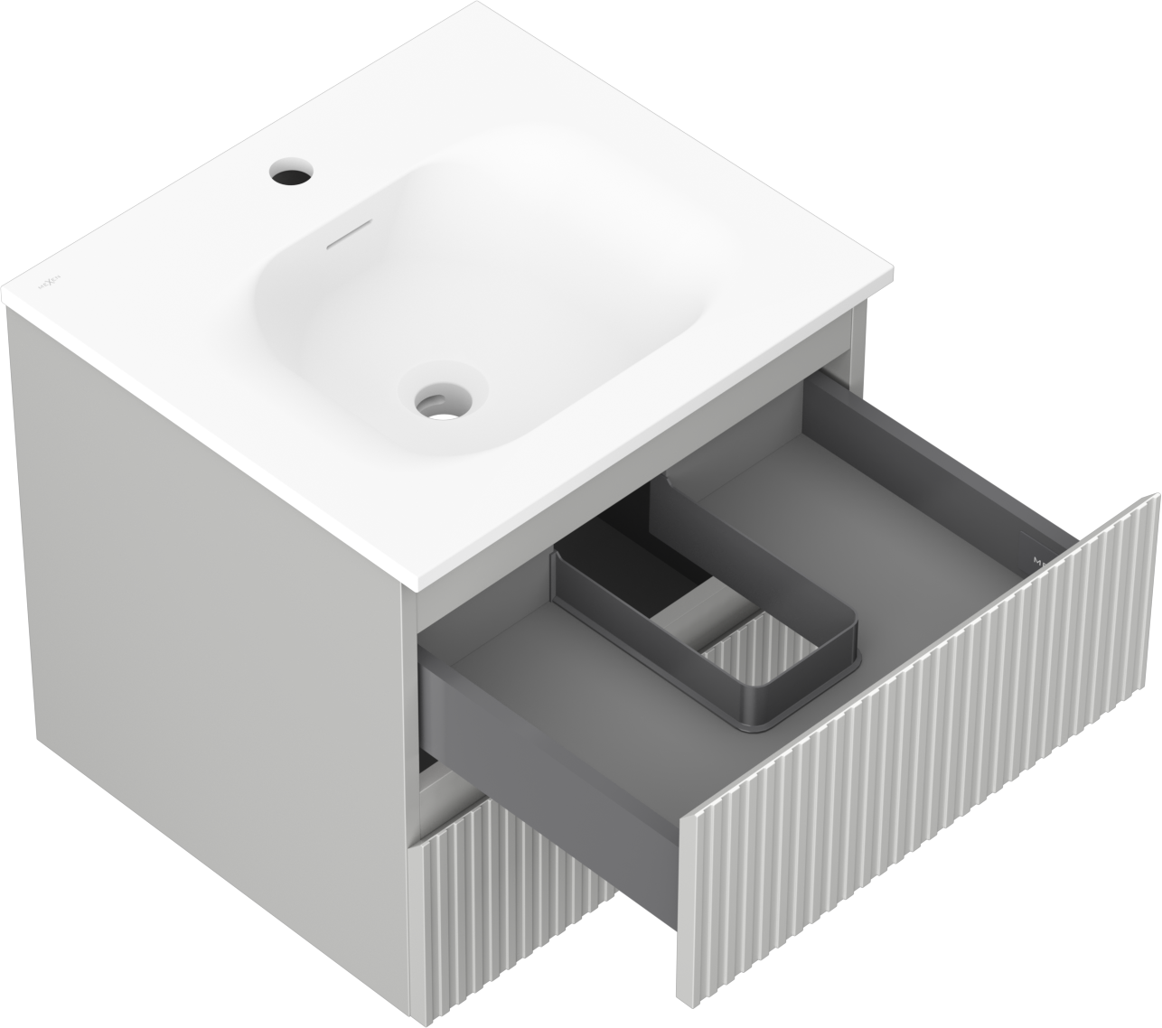 La découpe dans le tiroir est conçue de manière à accueillir le siphon, qui est nécessaire dans les installations de lavabo. Ainsi, le meuble peut être installé de manière pleinement fonctionnelle, sans devoir renoncer à l'espace du tiroir au profit de l'installation.