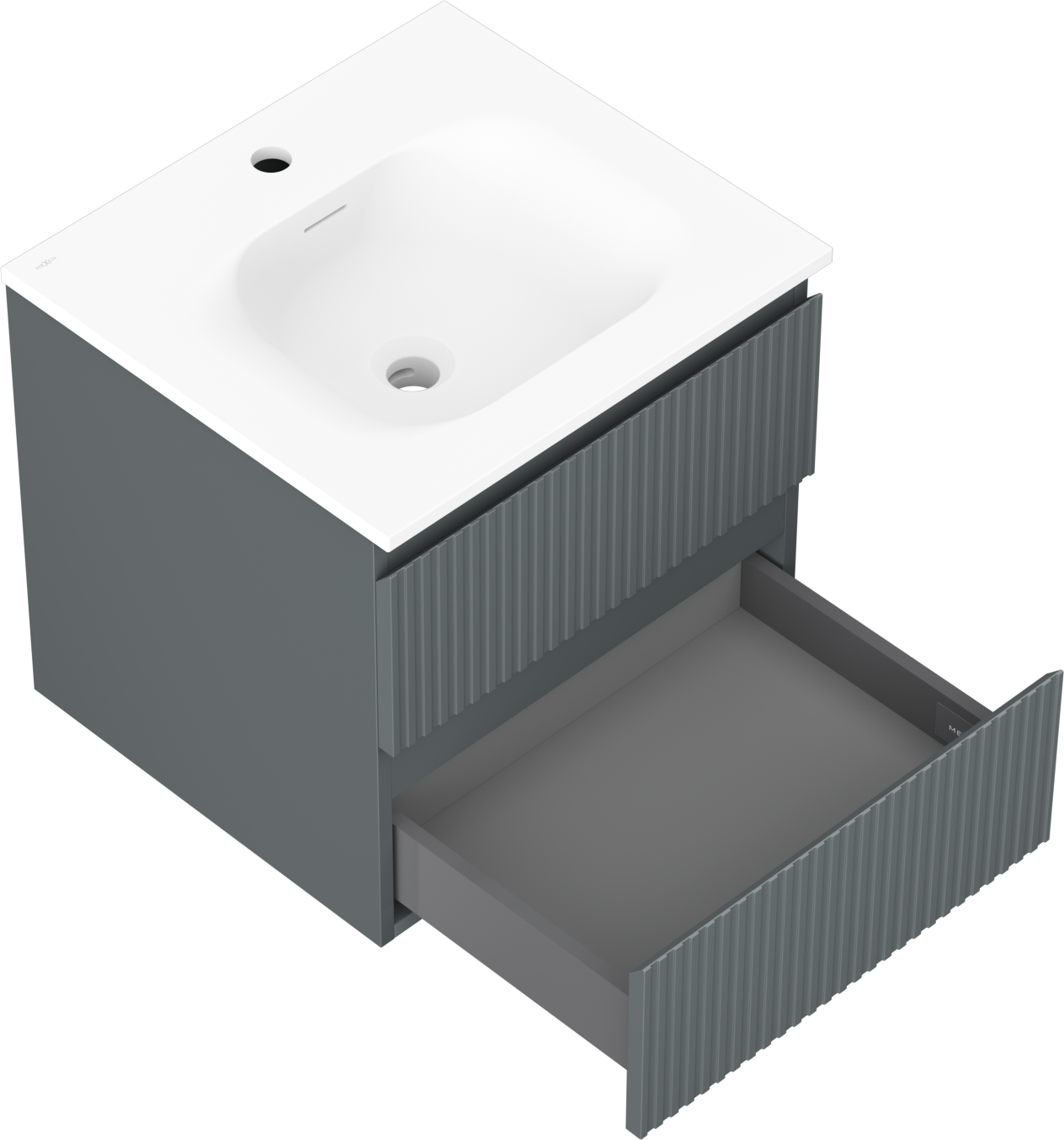 La découpe dans le tiroir est conçue de manière à accueillir le siphon, qui est nécessaire dans les installations de lavabo. Ainsi, le meuble peut être installé de manière pleinement fonctionnelle, sans devoir renoncer à l'espace du tiroir au profit de l'installation.