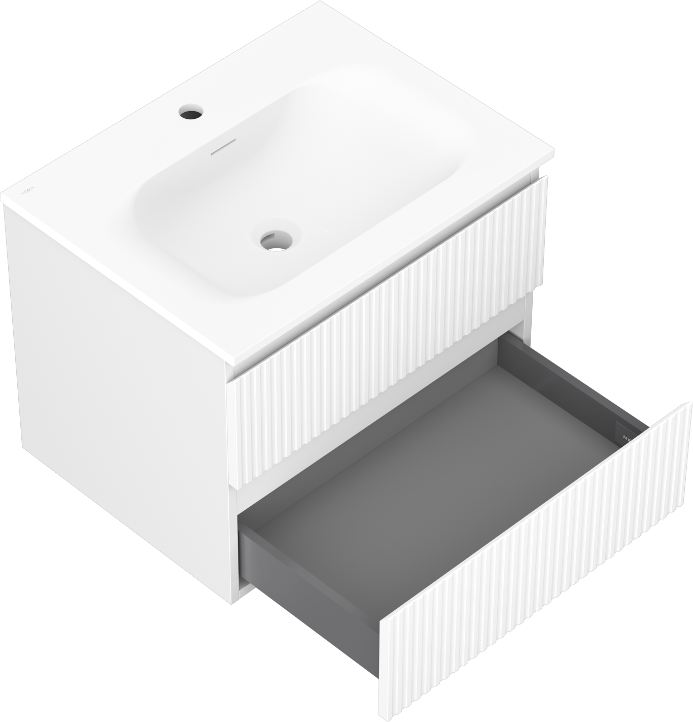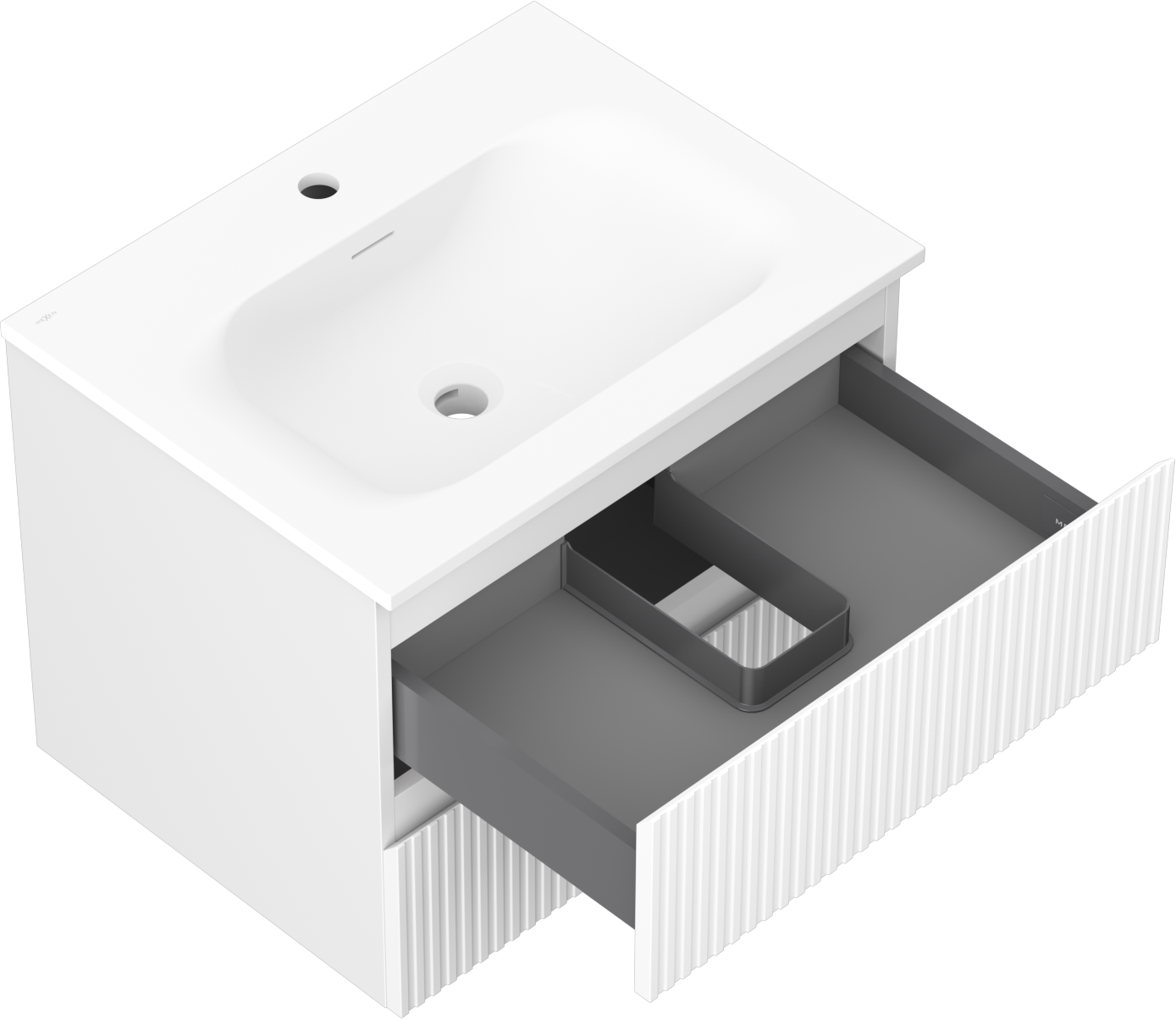 La découpe dans le tiroir est conçue de manière à accueillir le siphon, qui est nécessaire dans les installations de lavabo. Ainsi, le meuble peut être installé de manière pleinement fonctionnelle, sans devoir renoncer à l'espace du tiroir au profit de l'installation.
