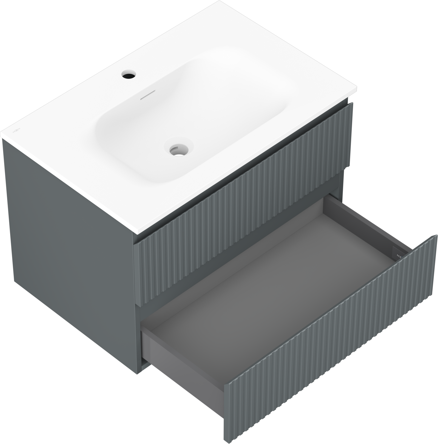 La découpe dans le tiroir est conçue de manière à accueillir le siphon, qui est nécessaire dans les installations de lavabo. Ainsi, le meuble peut être installé de manière pleinement fonctionnelle, sans devoir renoncer à l'espace du tiroir au profit de l'installation.